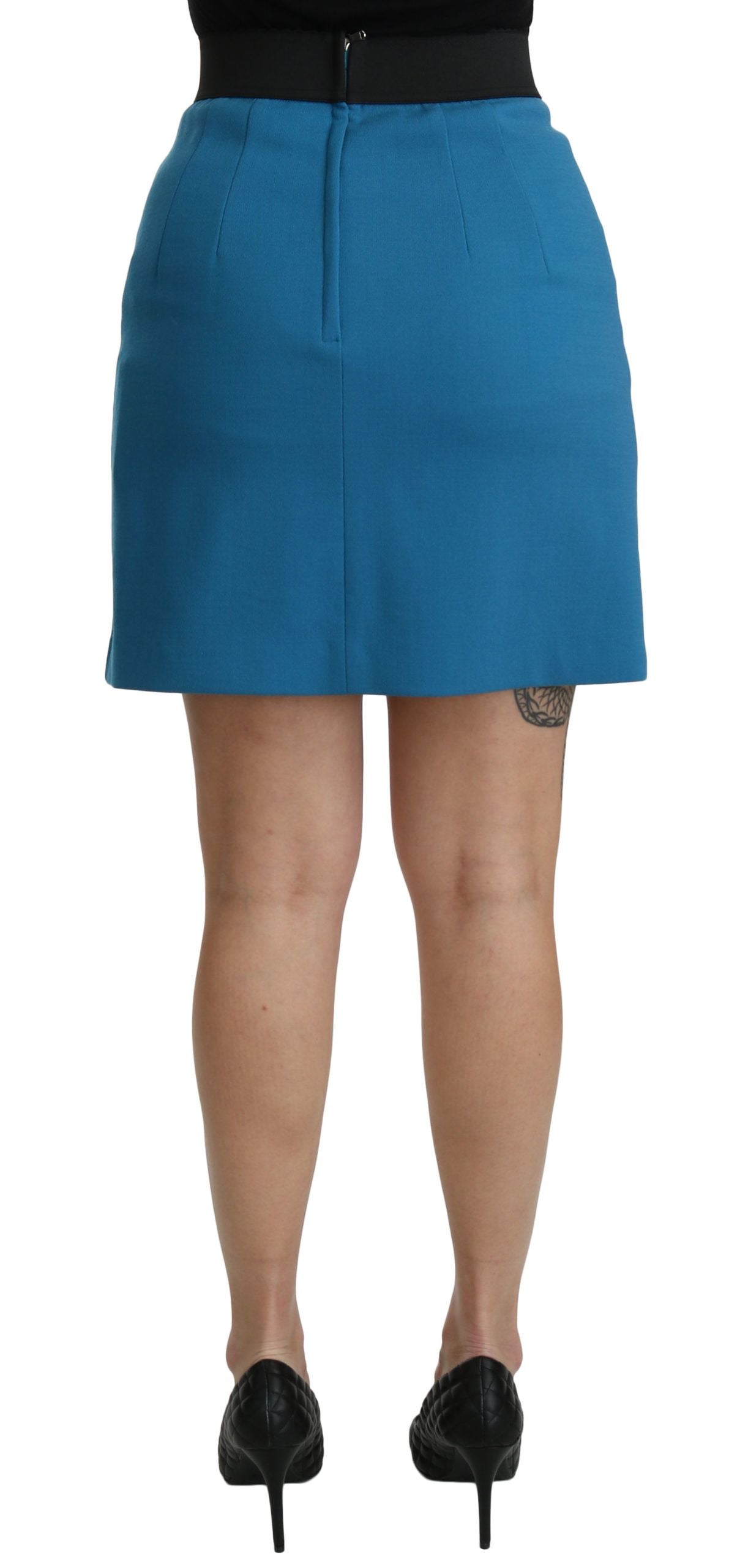 Indulge in the epitome of Italian craftsmanship with this stunning, authentic Dolce & Gabbana skirt. Adorned with exquisite details, this blue embellished piece features a fashion-forward above-knee cut with a high waist design, perfect for stepping out in style. Subtly accented with the iconic logo, this skirt boasts not just brand recognition but also unparalleled quality with its virgin wool composition. Elevate your wardrobe with this made-in-Italy masterpiece.