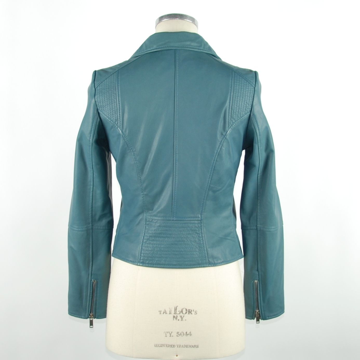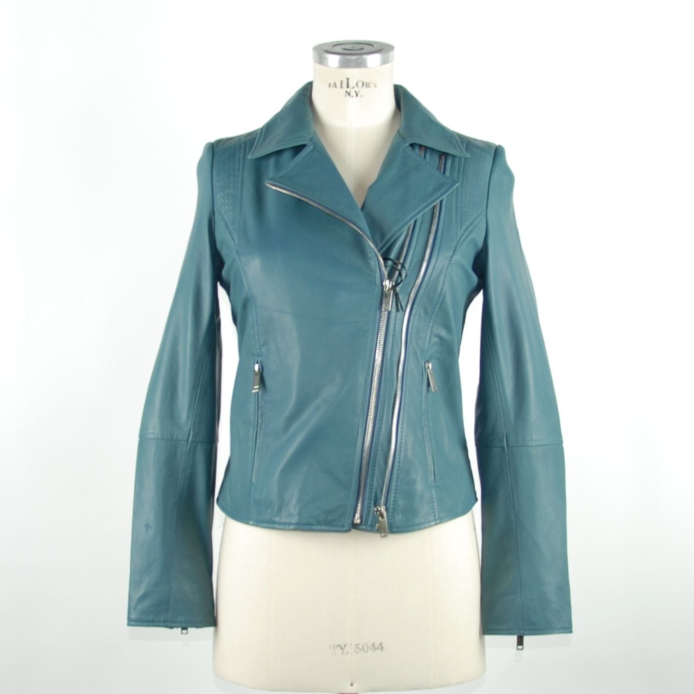 Step out in style with this chic blue leather jacket, a must-have addition to your outerwear collection. With its sleek nail jacket design and convenient front zip closure, this piece is both stylish and functional. Crafted from 100% genuine leather, the jacket exudes luxury and durability. Complete with long sleeves for added elegance and two external pockets for practicality, this jacket is perfect for both day-to-night looks.