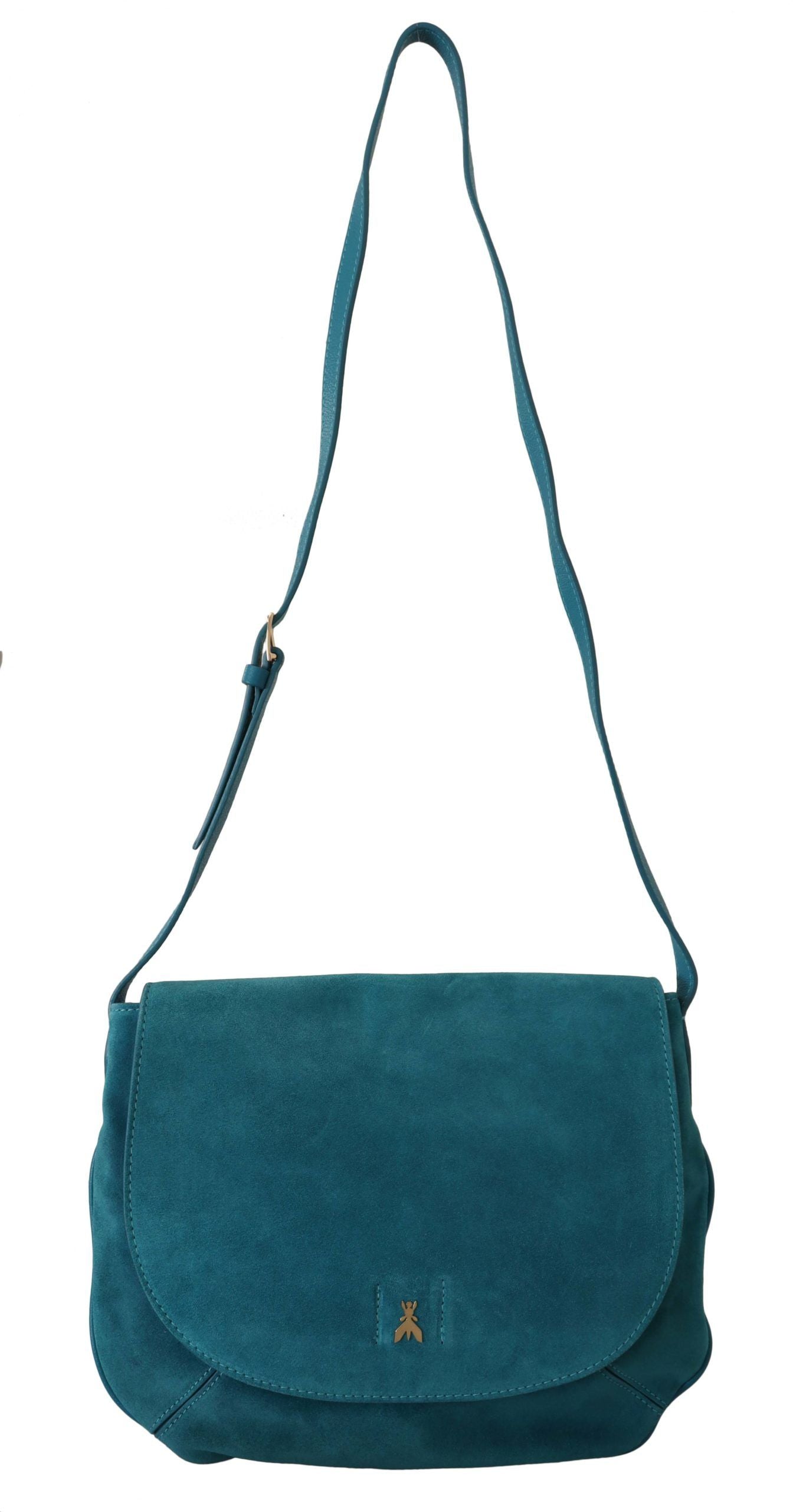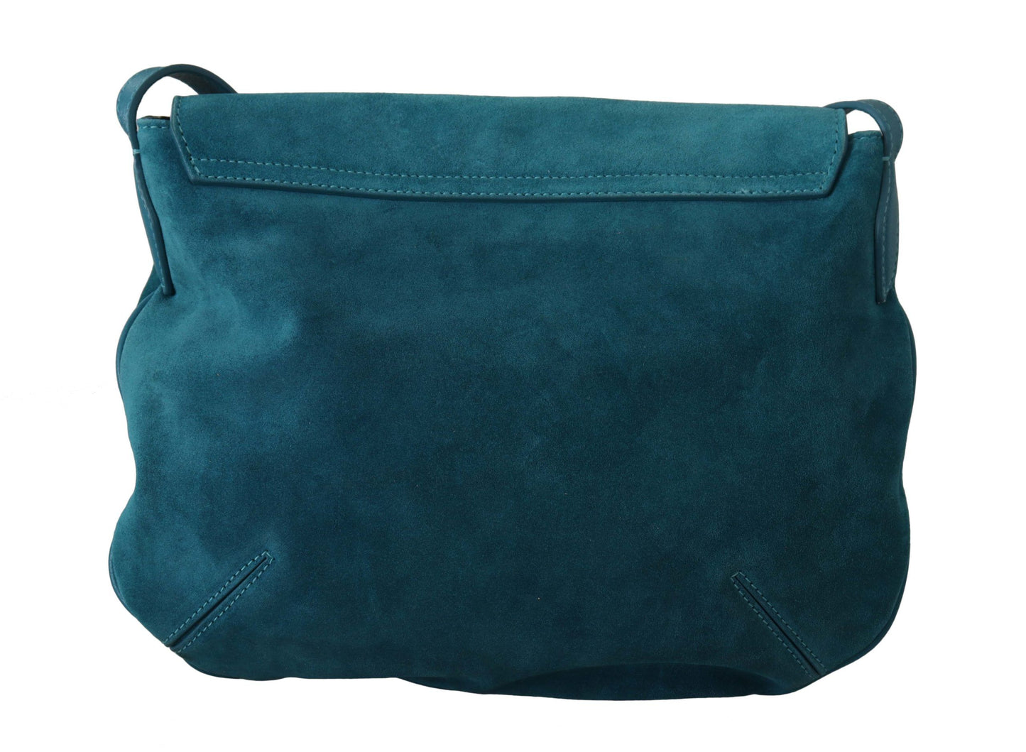 Embrace elegance and sophistication with the gorgeous Patrizia Pepe shoulder bag. This brand new, stunning bag comes with tags and is crafted from sumptuous suede leather, decorated with gold metal details. It features a comfortable leather strap and a secure magnetic flap closure, perfect for keeping your essentials safe. The luxurious blue-green color adds a unique touch to any outfit, making it a must-have addition to your accessory collection.