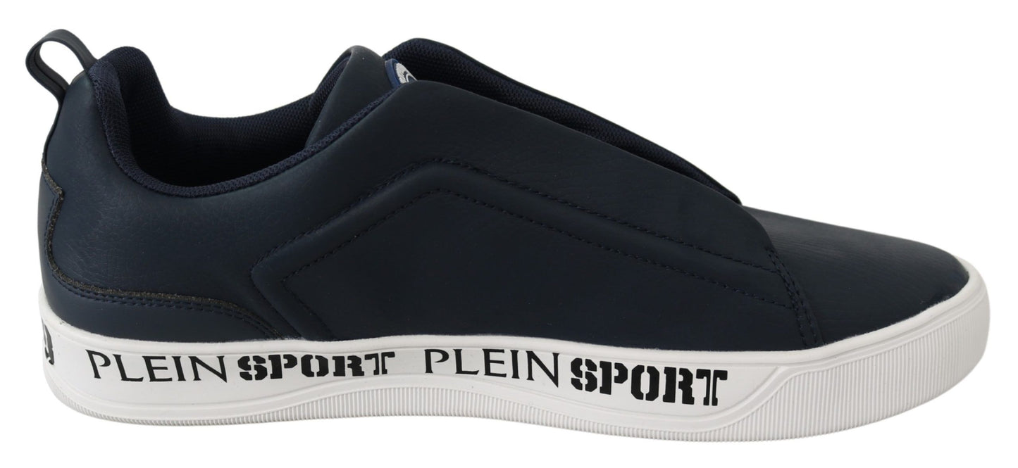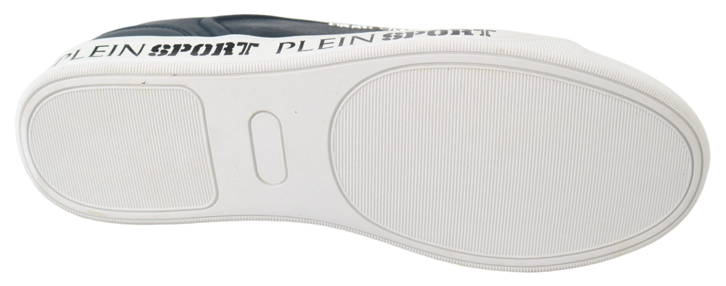 Step into luxury and style with these exquisite new-with-tags Plein Sport Men’s slip-on sneakers. These sneakers embody high craftsmanship and an air of exclusivity, accented with distinct logo details on a rubber sole perfect for those seeking both comfort and elegance.
