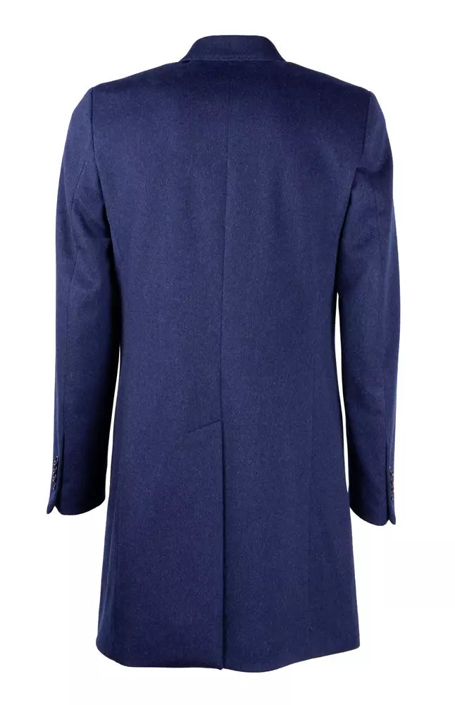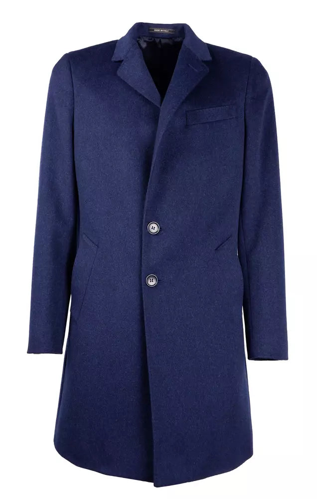 Step out in style with the ‘Made in Italy’ men’s coat, designed for the modern gentleman with a taste for luxury. Crafted with 100% Virgin Wool, this navy coat features a classic front button closure and two slanted side pockets. The fine Loro Piana fabric ensures padded comfort, making it perfect for chilly days without compromising on elegance.