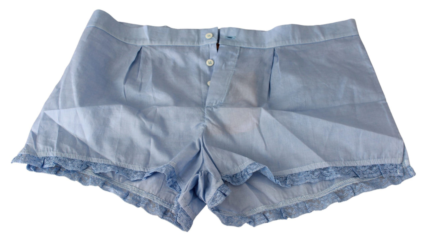 Indulge in the comfort and elegance of these Ermanno Scervino underwear shorts, perfect for adding a touch of luxury to your everyday essentials. Crafted with sumptuous 100% cotton, these shorts are as comfortable as they are stylish, adorned with delicate blue lace detailing and subtle logo accents. Designed and made in Italy, they embody the exquisite craftsmanship and fashion-forward design synonymous with the Ermanno Scervino brand.