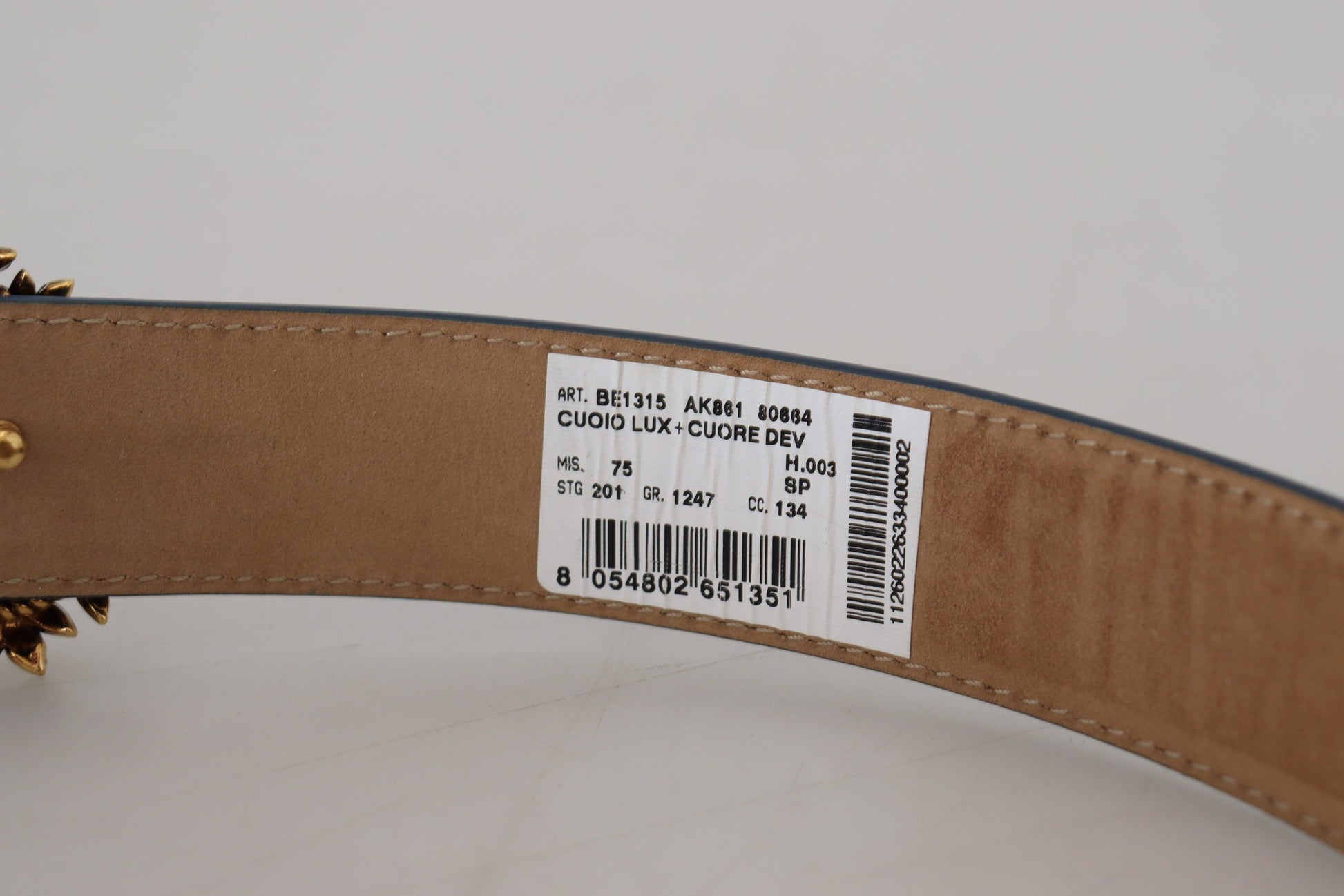 Accentuate your silhouette with this stunning and authentic Dolce & Gabbana belt, perfect for adding a touch of elegance to your ensemble. Featuring a luxe gold Devotion Heart buckle that epitomizes the brand’s keen eye for romance and sophistication. This accessory is not just a belt but a statement piece that shows your devotion to style and quality.