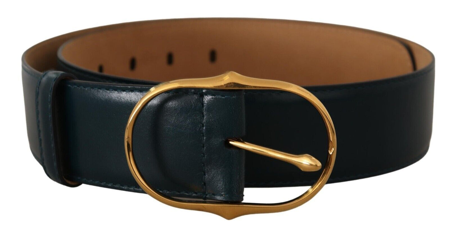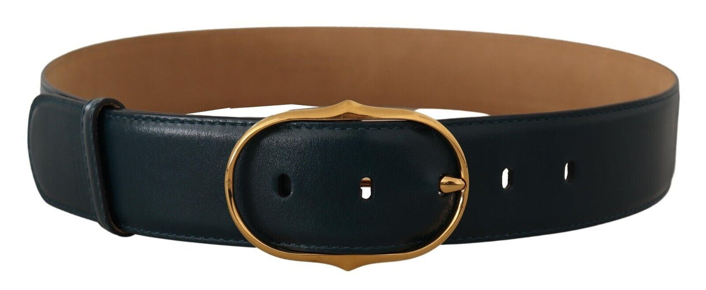 Elegant Blue Leather Belt with Gold Buckle