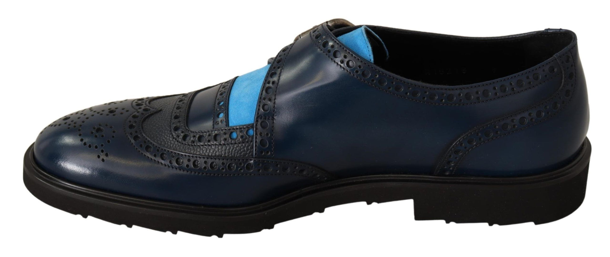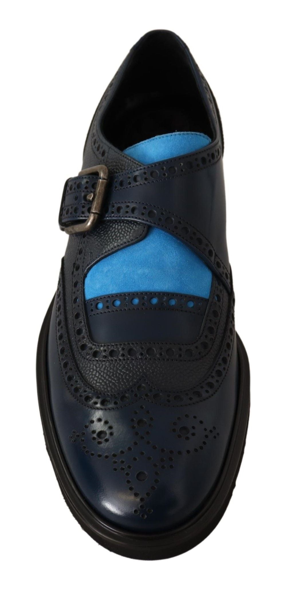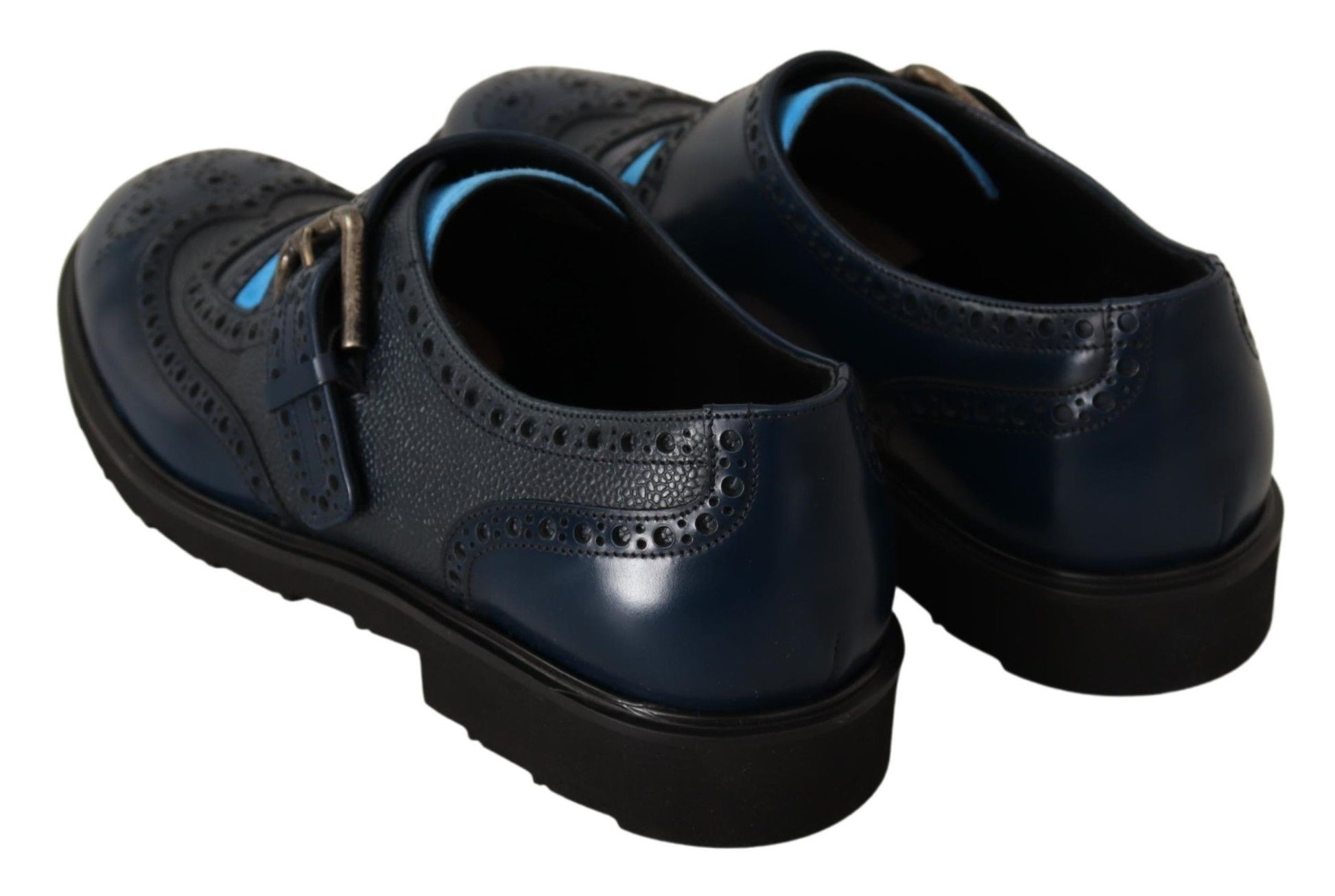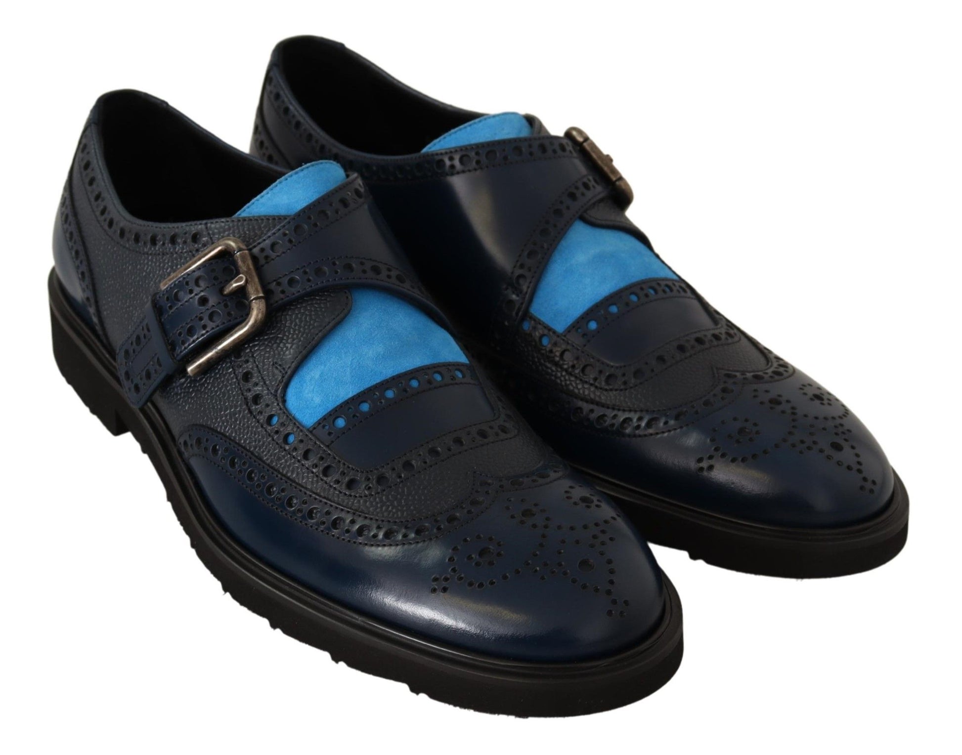 Step into luxury with these exquisite blue leather monk shoes for men. Impeccably crafted by the renowned Dolce & Gabbana, these shoes showcase a distinguished buckle detail that complements their refined style. The premium leather construction promises unmatched quality and comfort, while the durable rubber sole ensures you stride with confidence. Perfect for formal events or elevating your everyday attire, these shoes are crafted in Italy, evoking exclusivity and high craftsmanship.