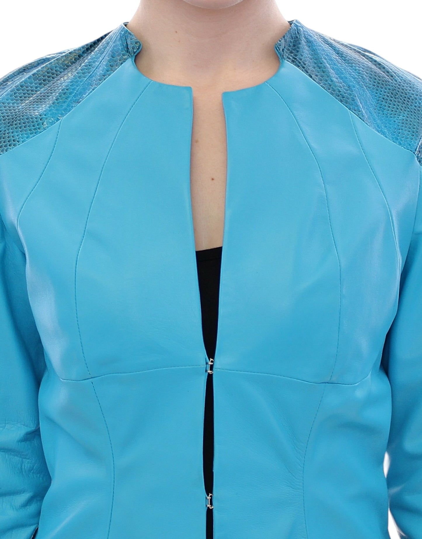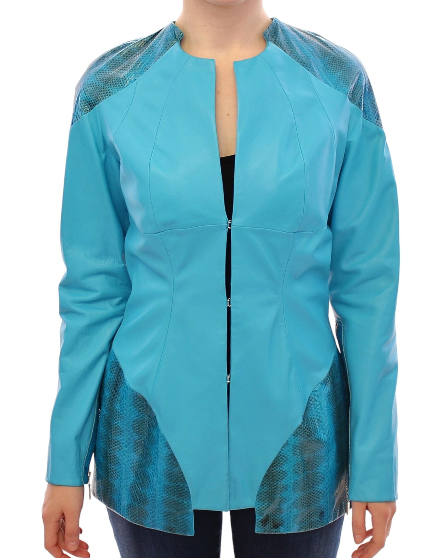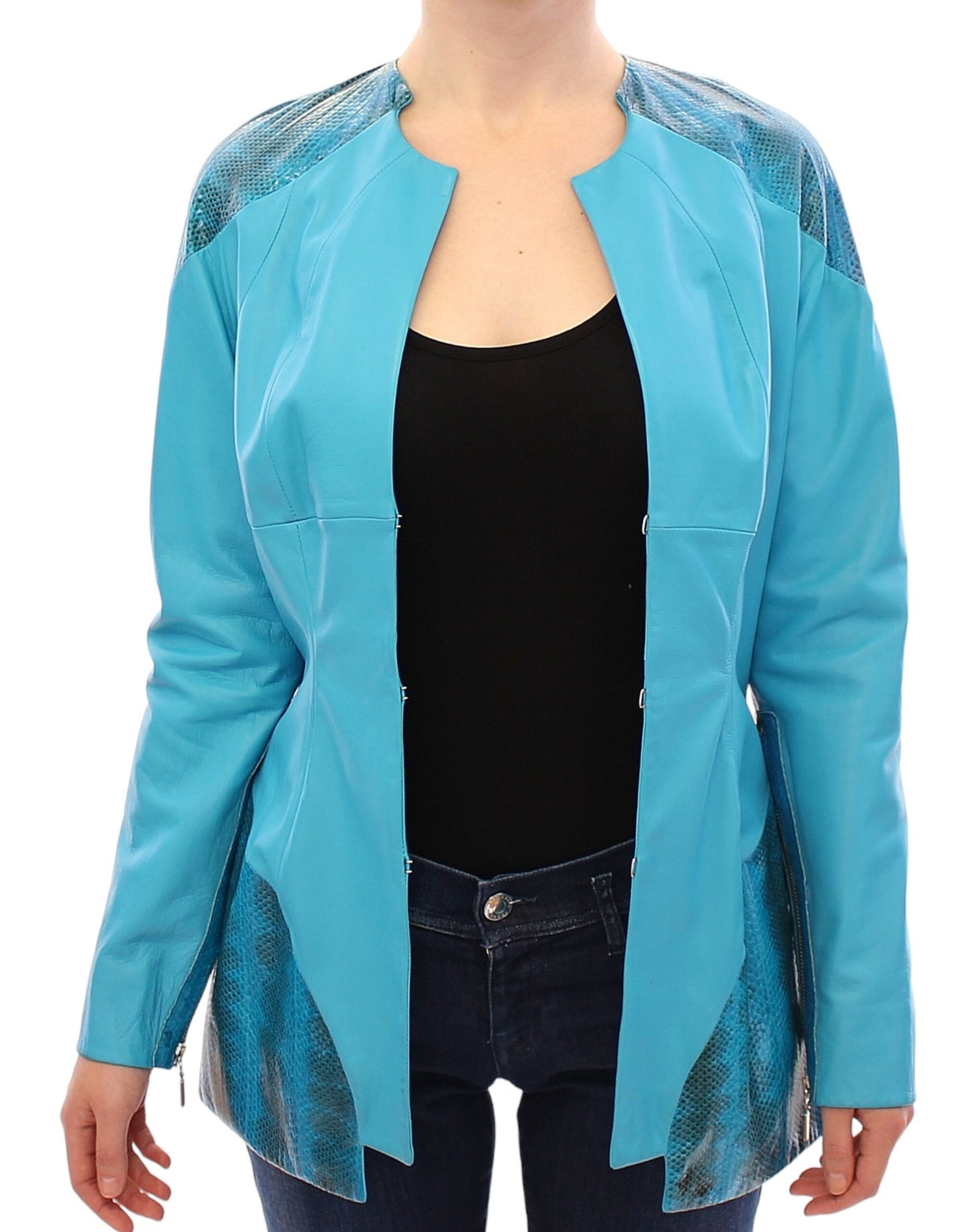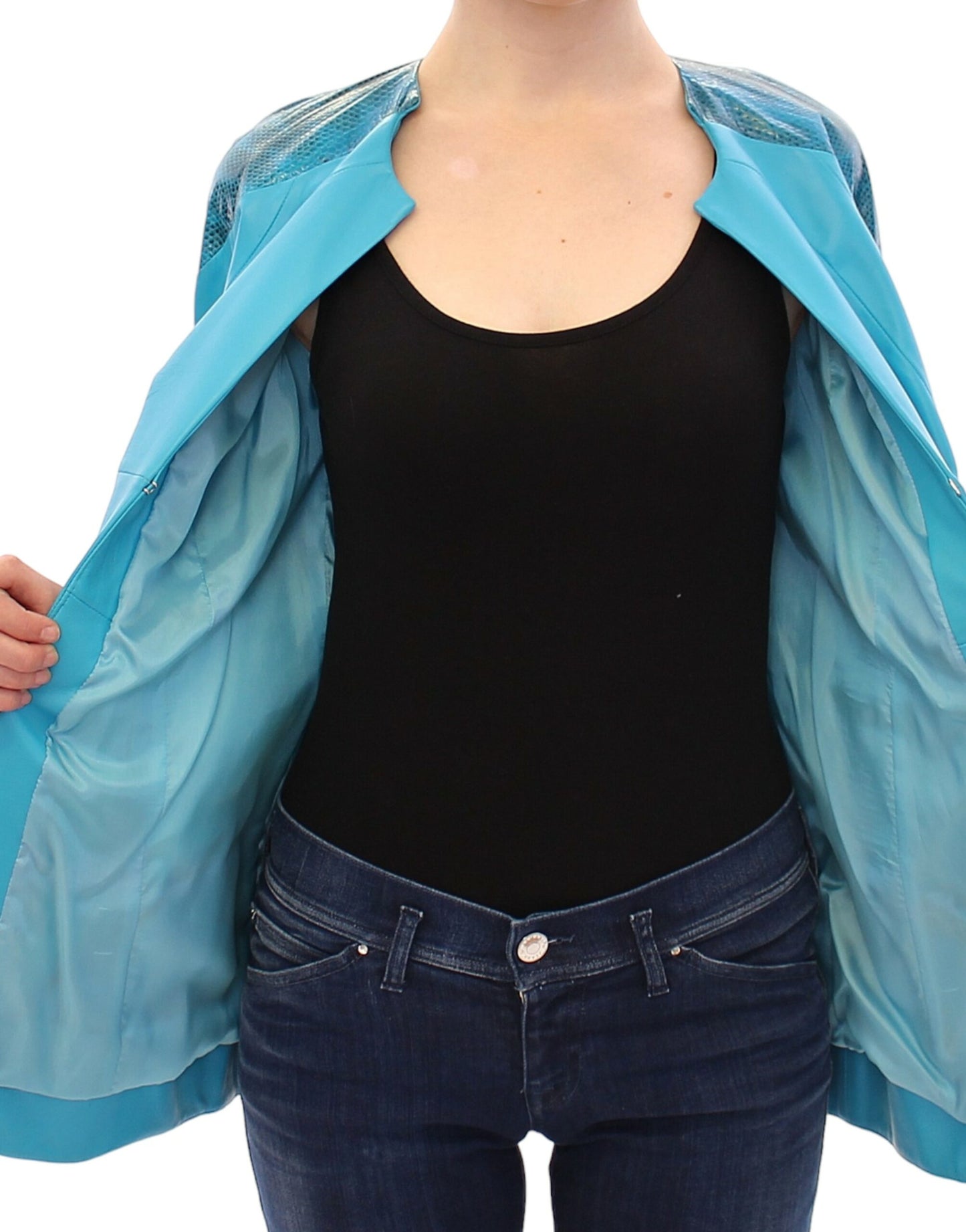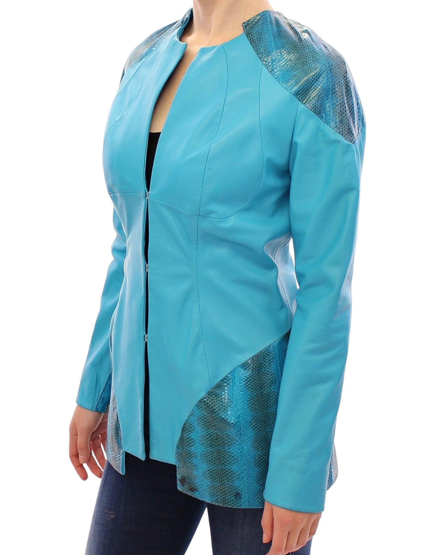 Gorgeous brand new with tags, 100% Authentic VLADIMIRO GIOIA blue leather with snake print leather jacket. Very exclusive and very rare to find Vladimiro Gioia at outlet prices.