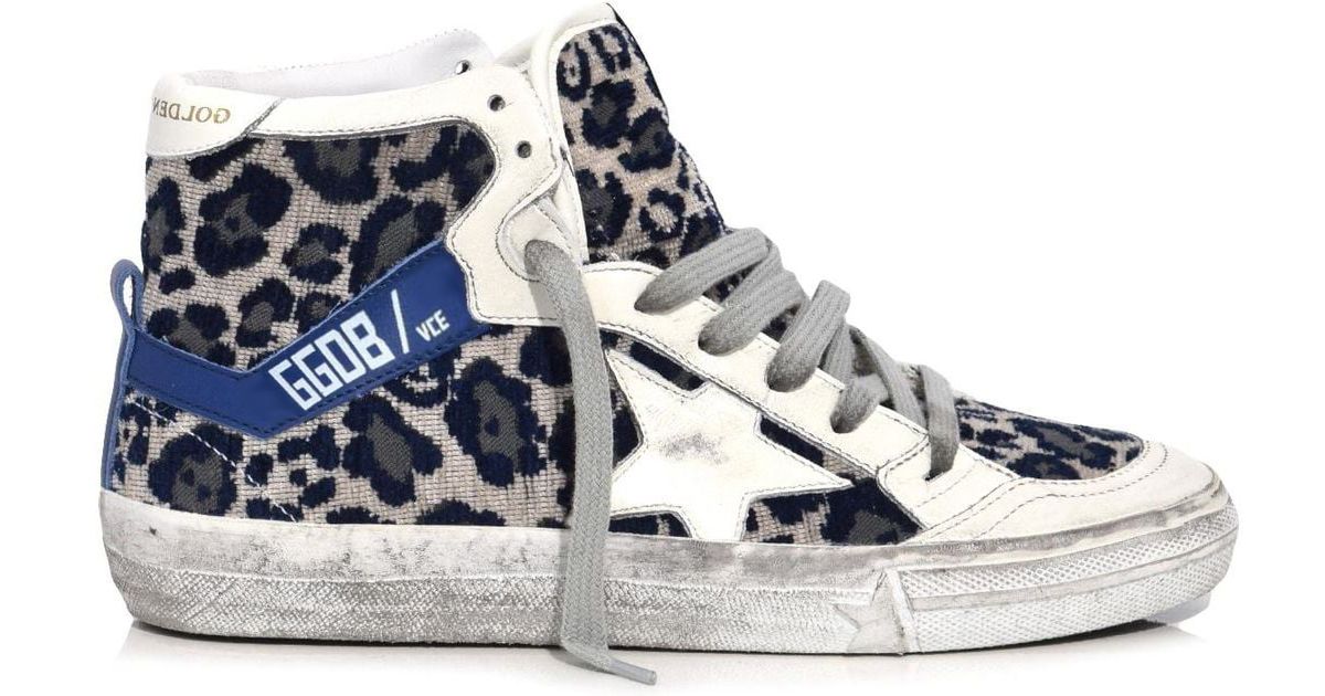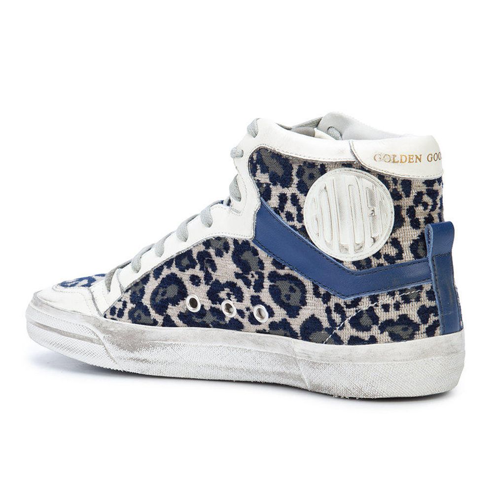 Blue Leopard Print Velvet-Lined Sneakers