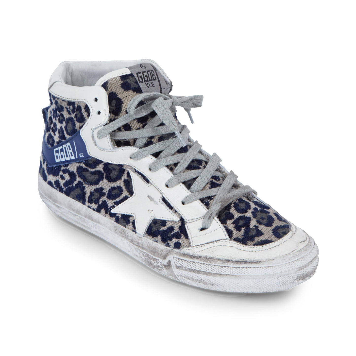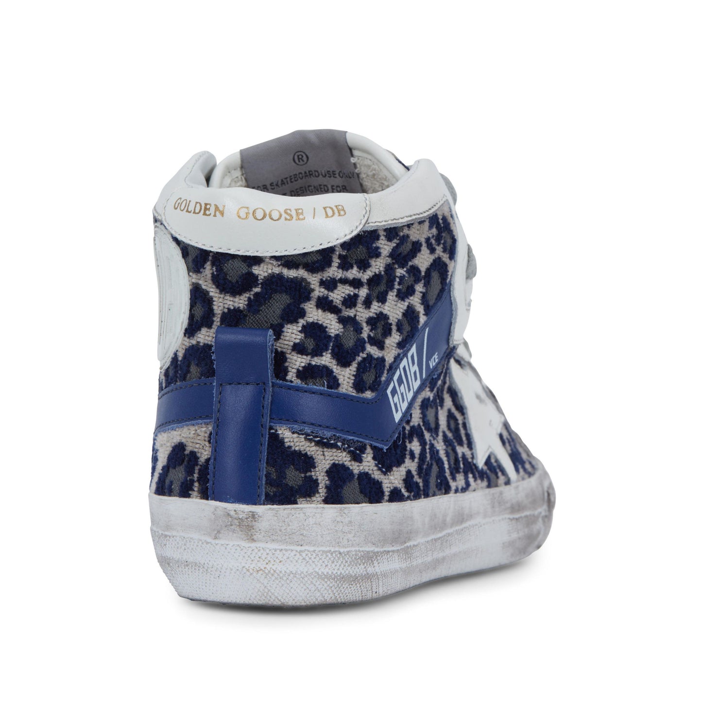 Step out in style with these eye-catching women’s sneakers, boasting a luxurious blue leopard print velvet lining that adds an exotic touch to your casual attire. Crafted from the finest calfskin leather and adorned with the signature star logo, these sneakers feature white leather details and crisp blue leather side bands that elevate their chic factor. The sturdy rubber sole ensures durability and comfort for all-day wear. Made with Italian craftsmanship, these sneakers are an embodiment of fashion and function.