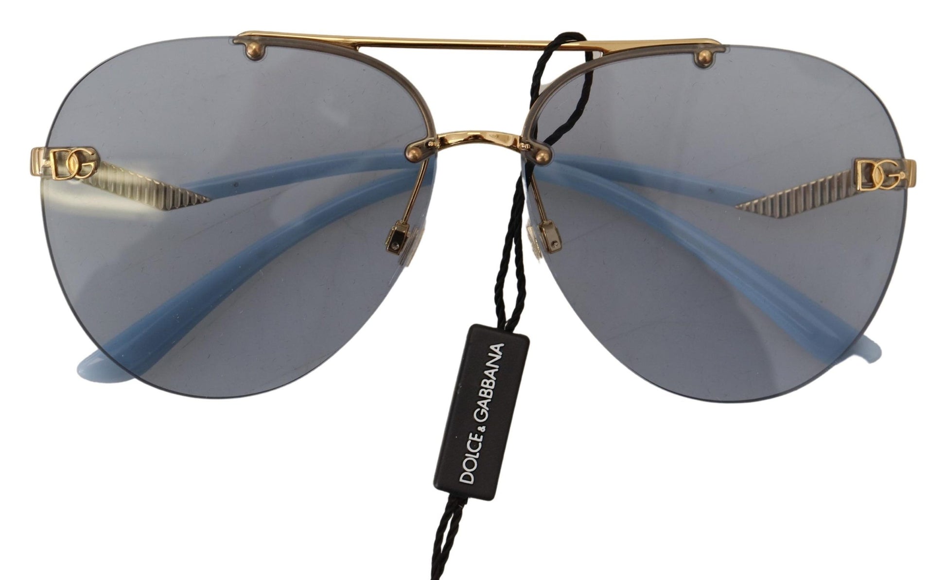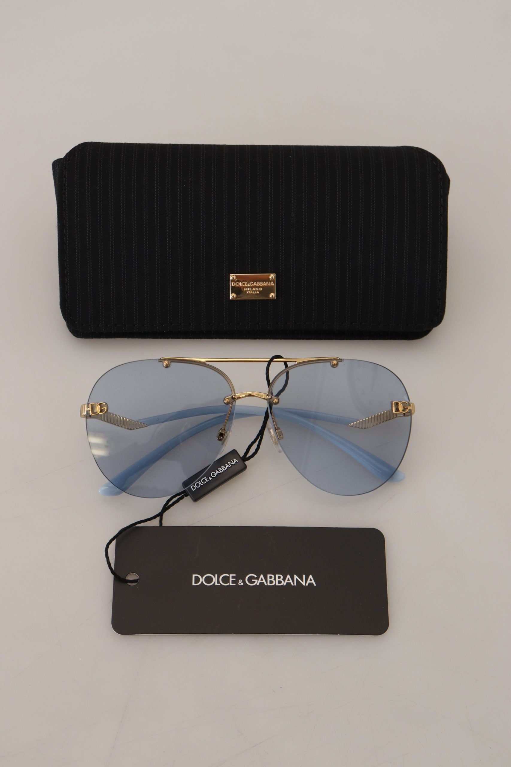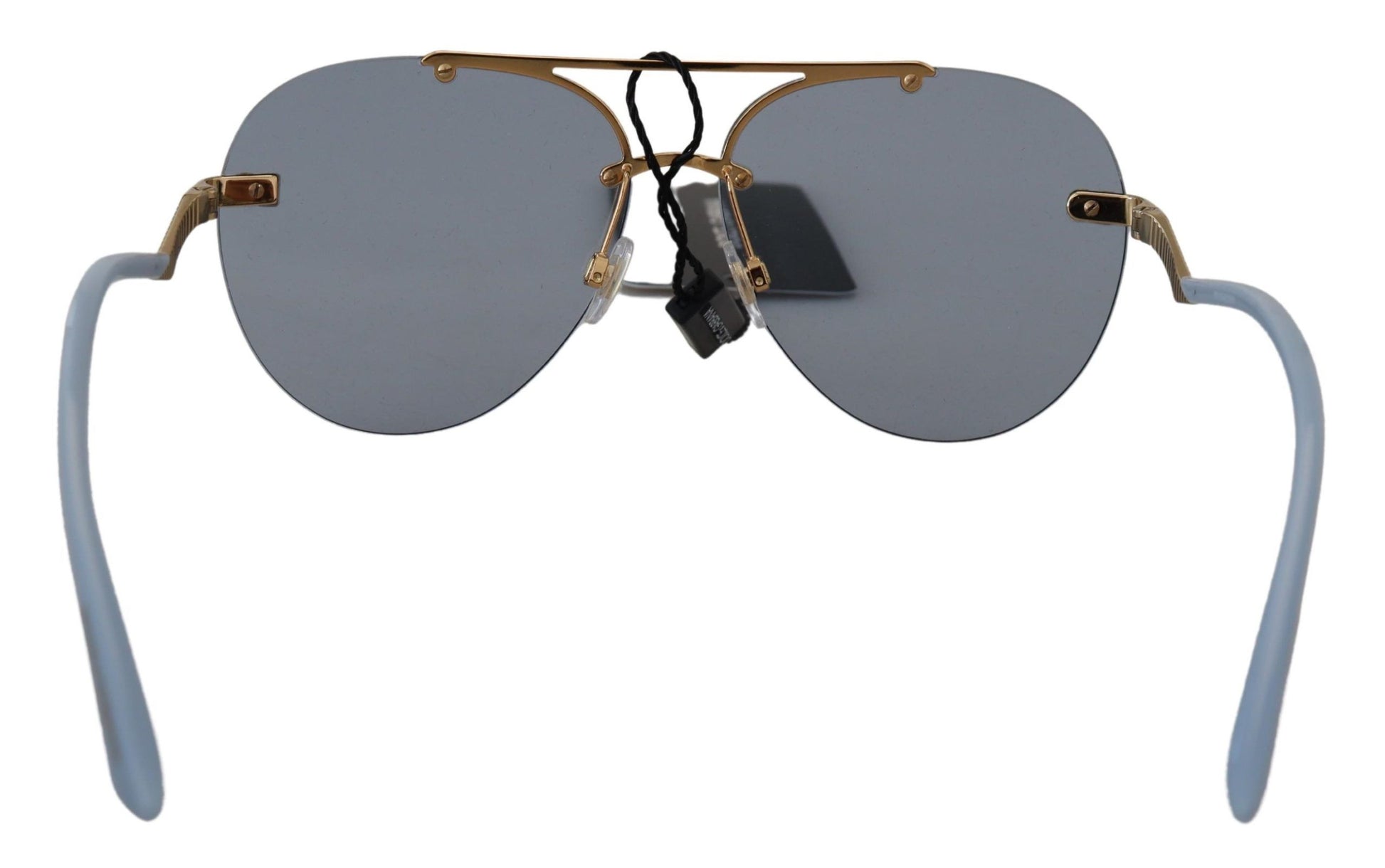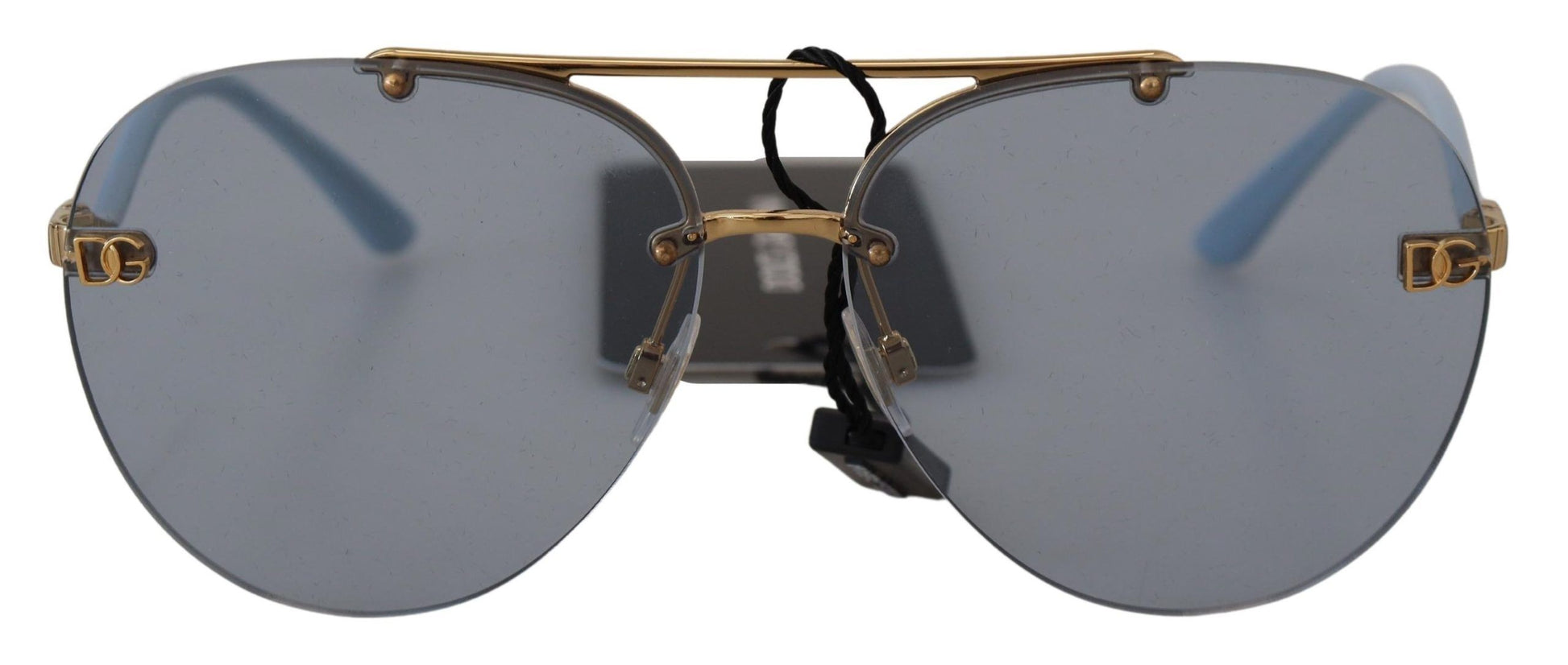 Indulge in the elegance of these chic pilot sunglasses from Dolce & Gabbana, featuring wide azure lenses and a striking golden metallic frame. Crafted with excellence, these sunglasses are a perfect blend of exclusivity and sophistication with 100% UV protection for an effortlessly stylish look.