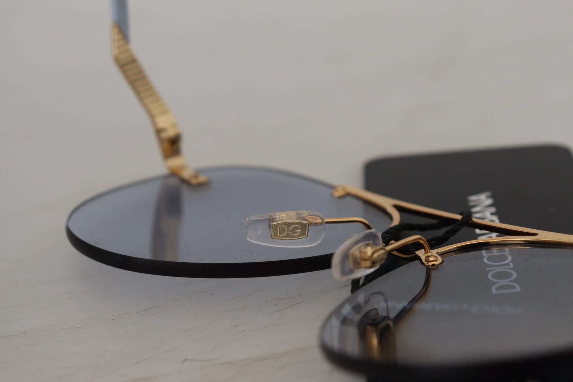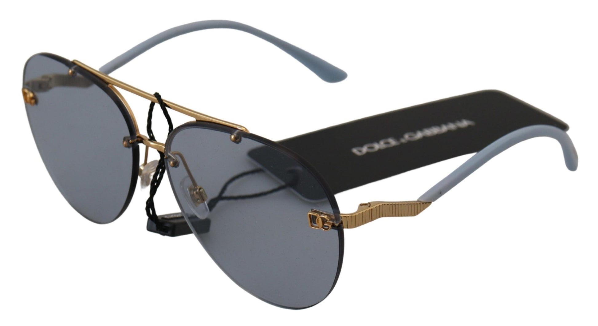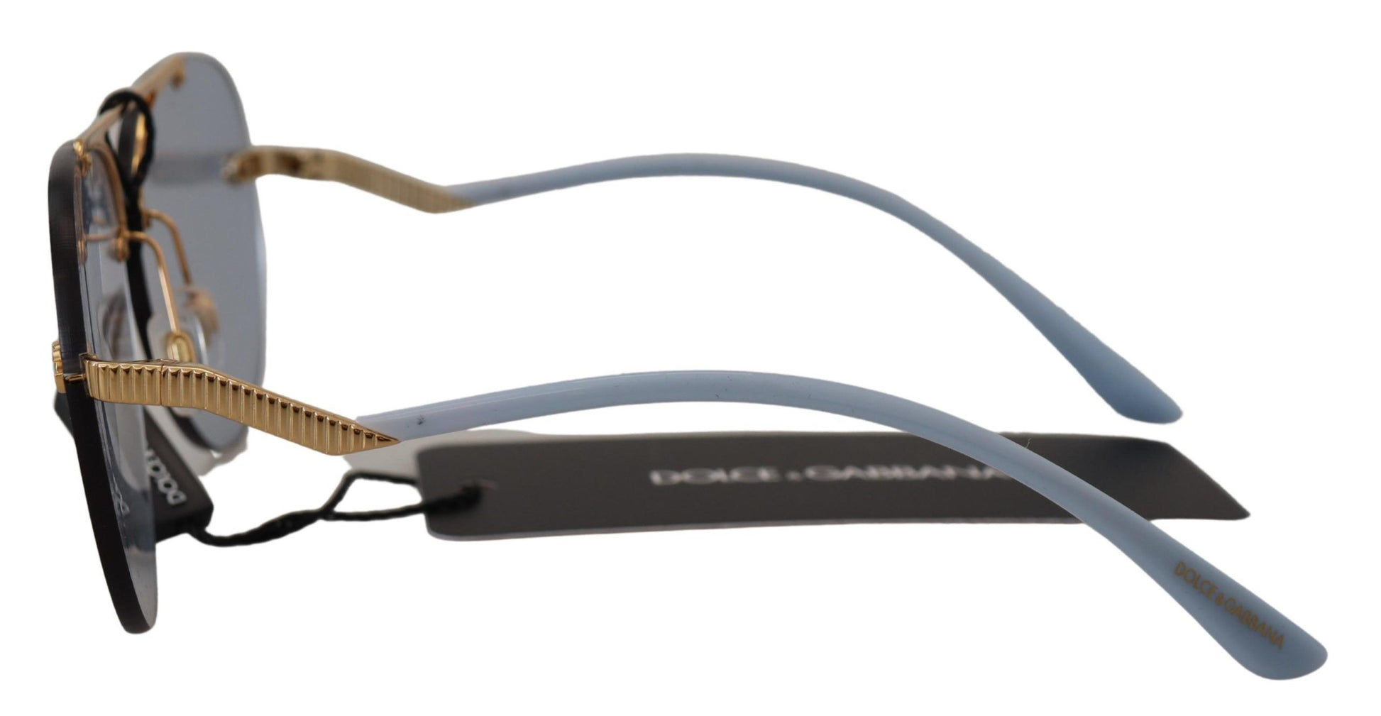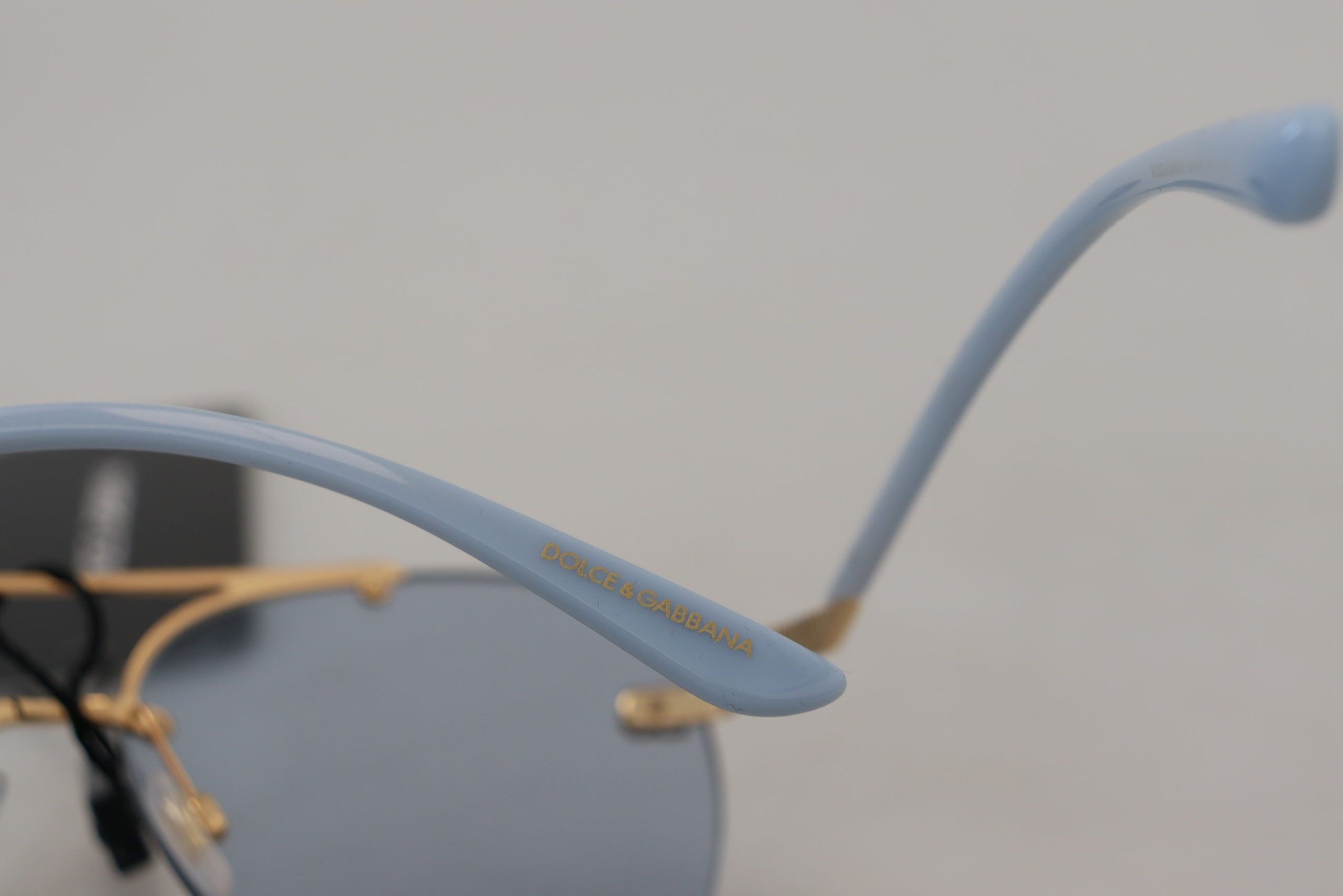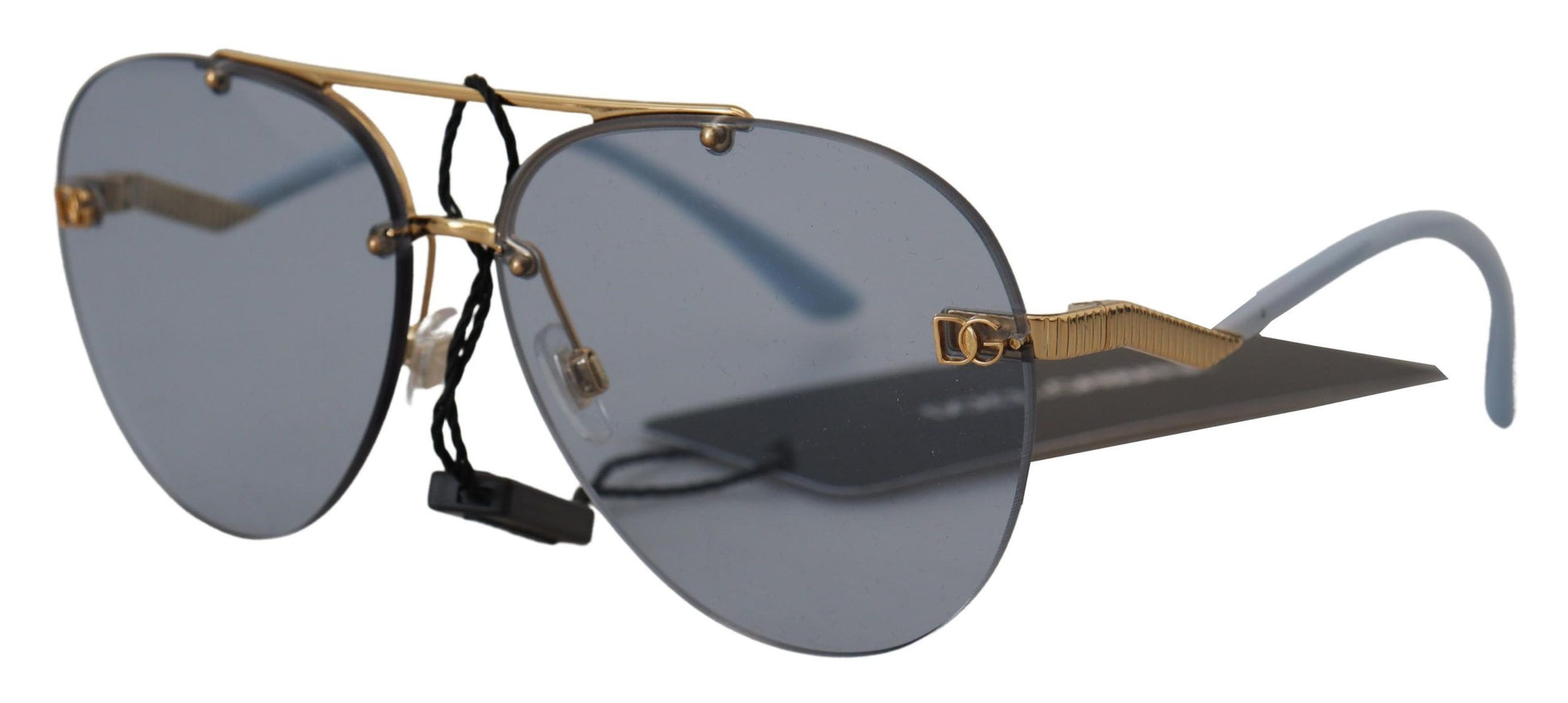 Indulge in the elegance of these chic pilot sunglasses from Dolce & Gabbana, featuring wide azure lenses and a striking golden metallic frame. Crafted with excellence, these sunglasses are a perfect blend of exclusivity and sophistication with 100% UV protection for an effortlessly stylish look.