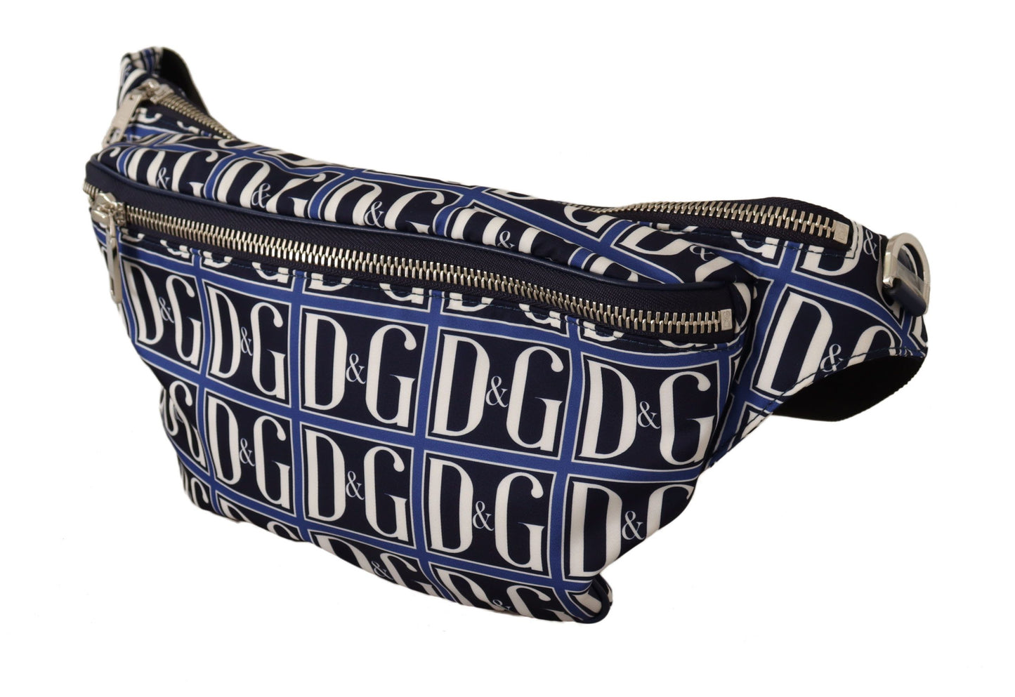 Elevate your accessories collection with this sleek and stylish Blue Logo Mania Belt Bag from the house of Dolce & Gabbana. Crafted from premium nylon, this bag is accented with an eye-catching trendy logo print, making it a standout piece. Perfect for hands-free convenience, this belt bag keeps your essentials secure with a smooth zipper closure and flaunts exquisite craftsmanship. A must-have for those who appreciate luxury and functionality.
