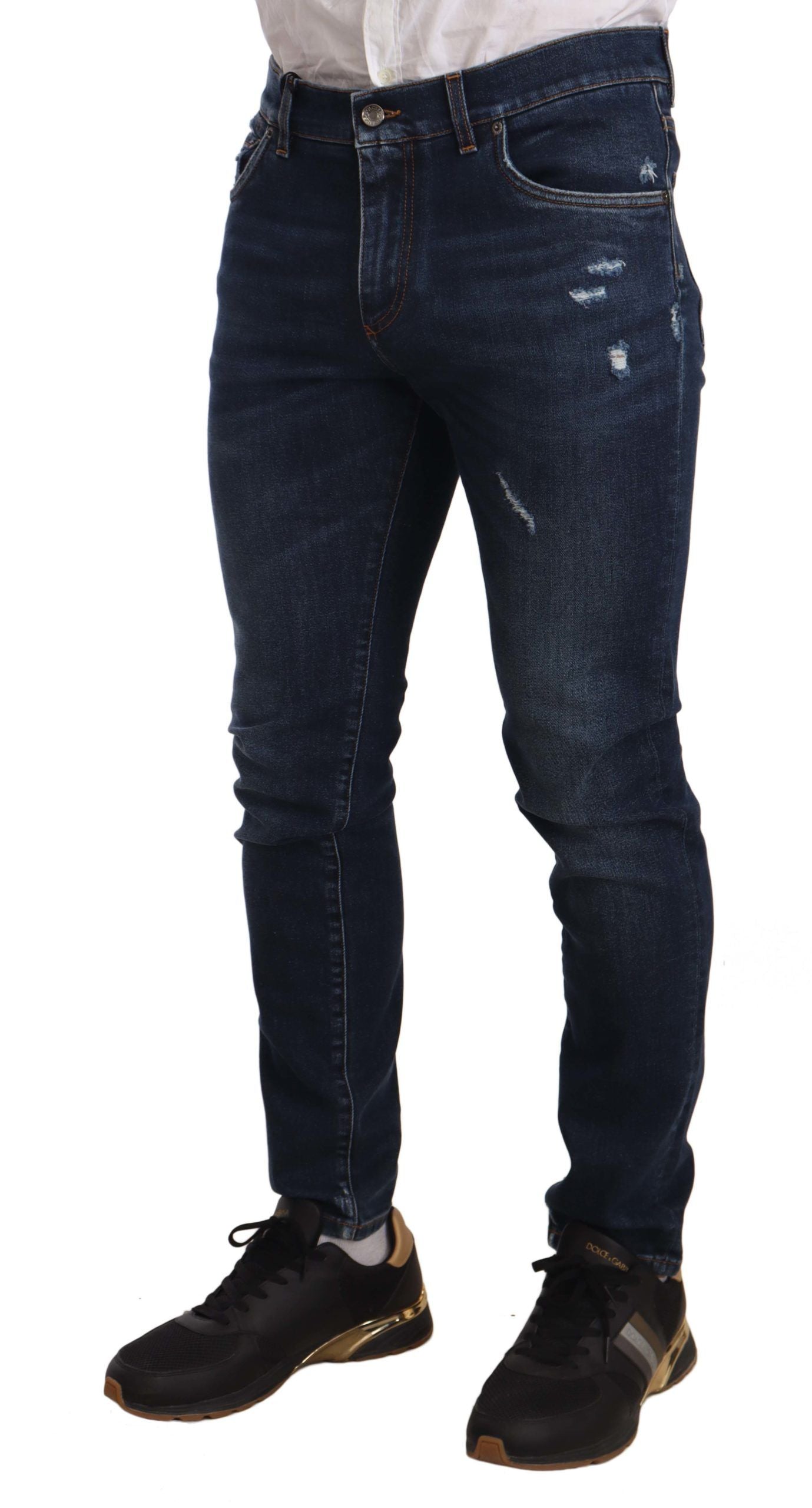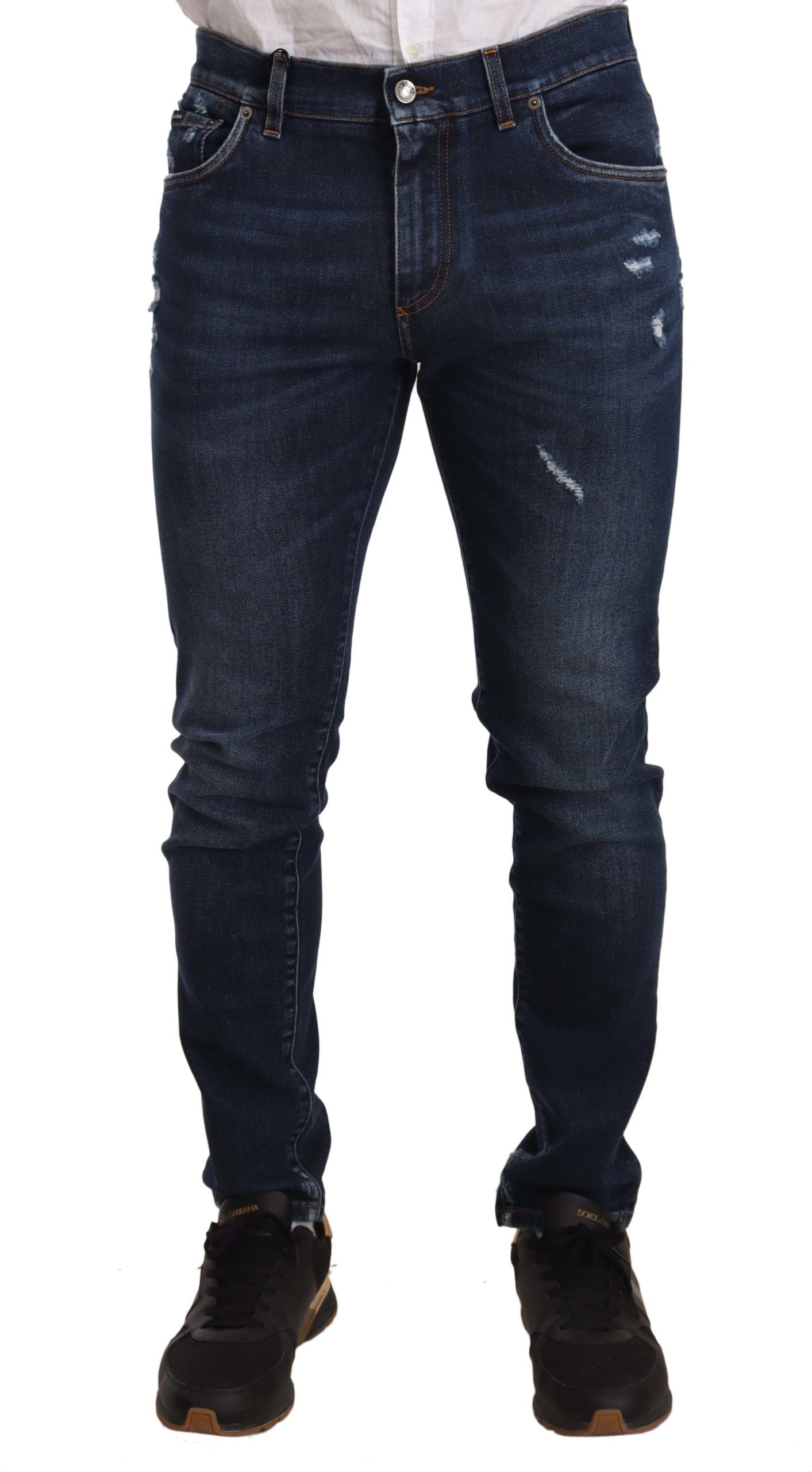 Enhance your denim collection with these striking Dolce & Gabbana Skinny blue low-rise jeans. Flaunting a slim fit that contours your silhouette, these jeans are a testament to Italian craftsmanship, perfect for any season. The premium blend of materials ensures a comfortable stretch, while the subtle fading gives them a stylish, worn-in look.