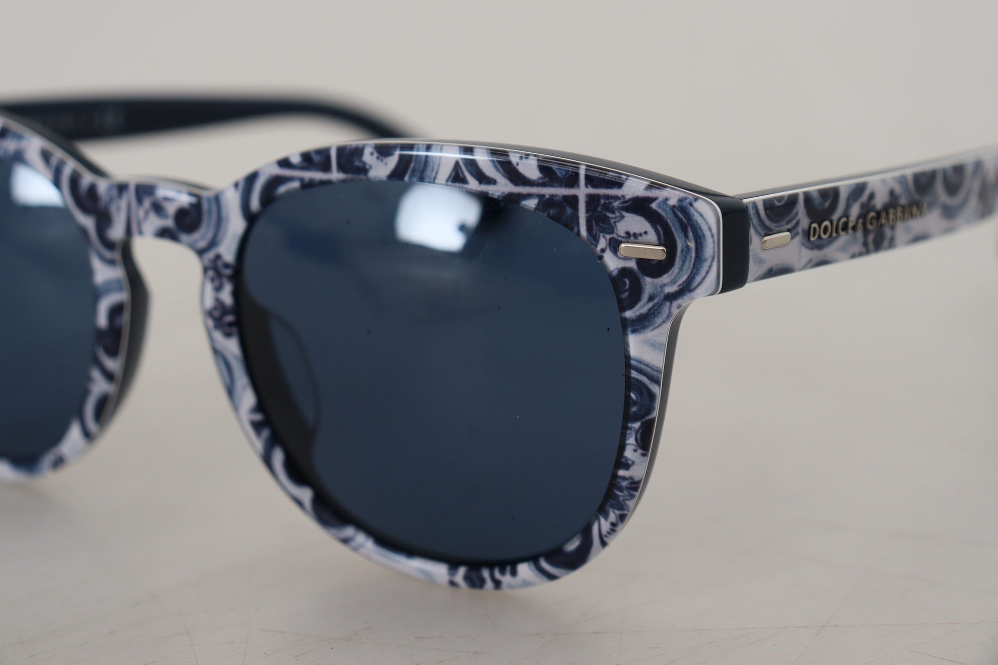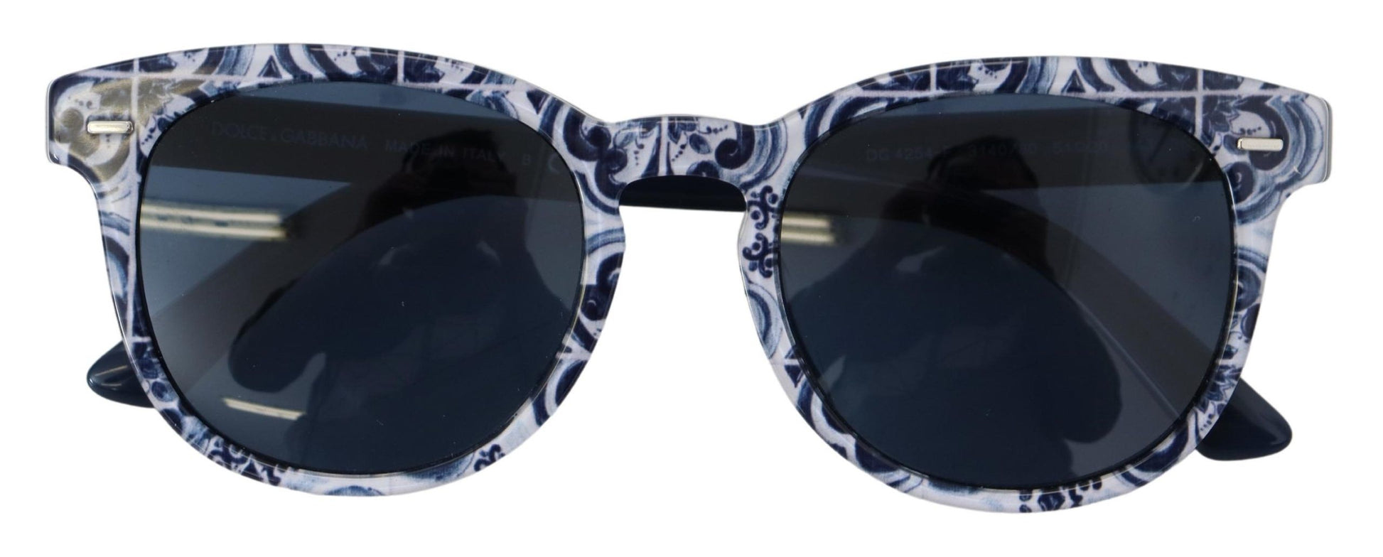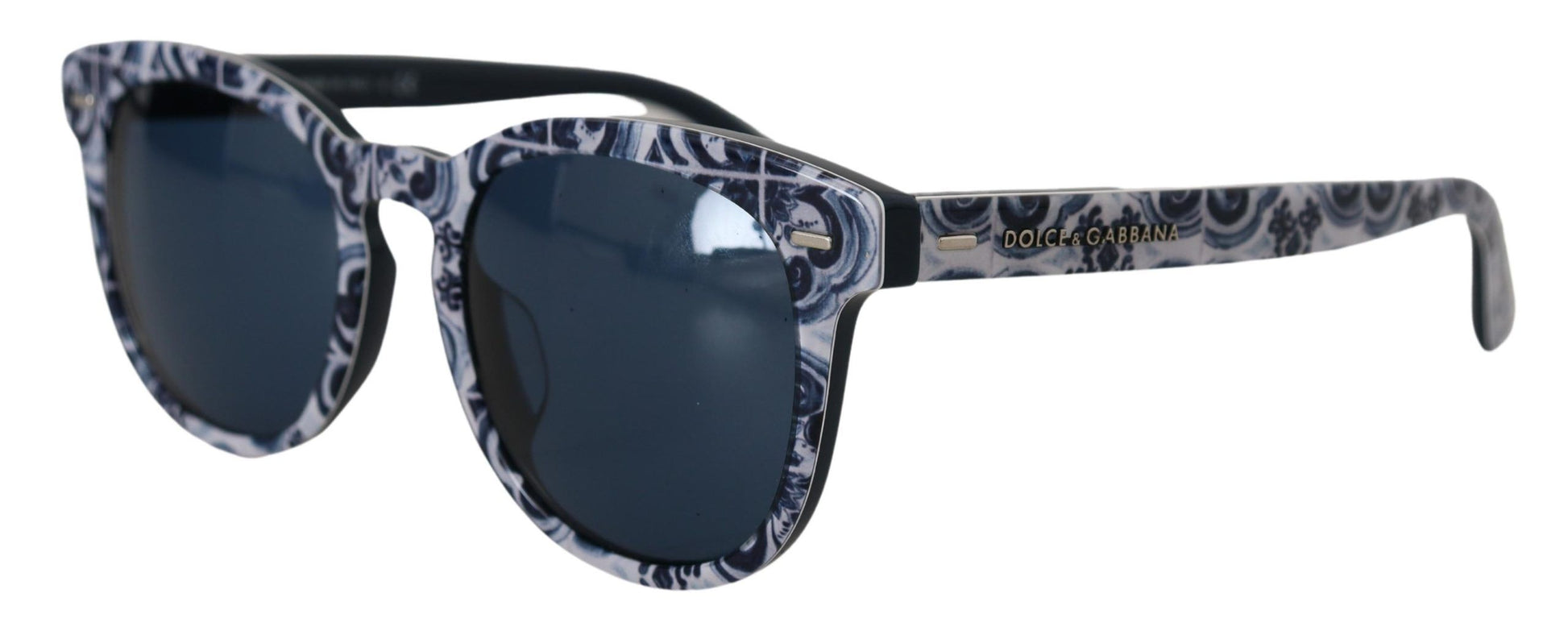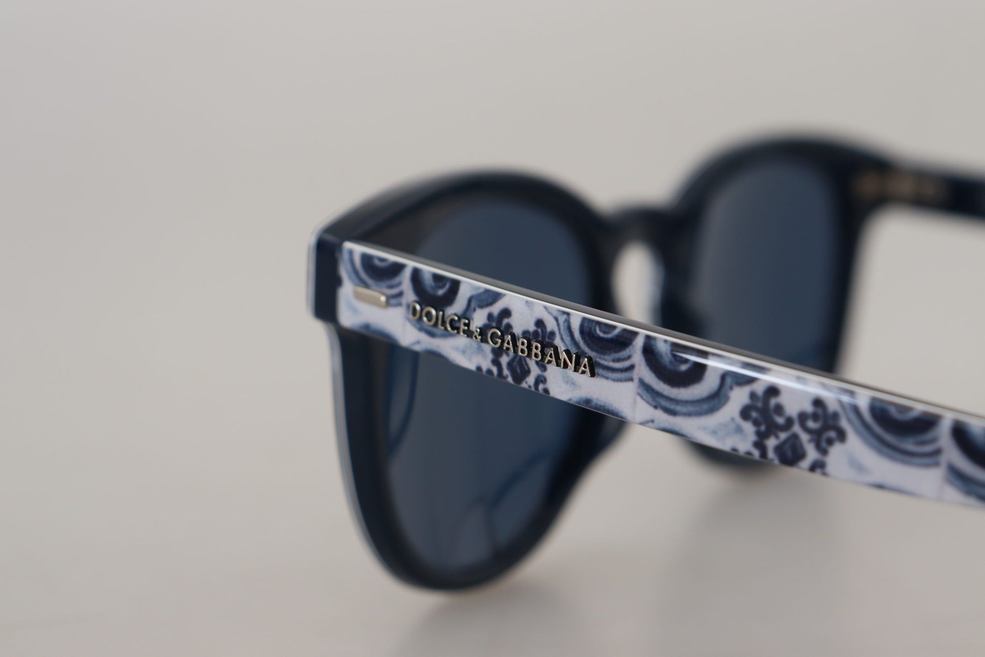 Step out in style with these exquisite Dolce & Gabbana Majolica round sunglasses. Designed for the fashion-forward woman, these sunglasses feature a stunning blue acetate frame complemented by blue lenses that offer complete UVA/B protection, ensuring both flair and functionality. Perfectly crafted in Italy, they are an essential accessory for your sun-soaked adventures.