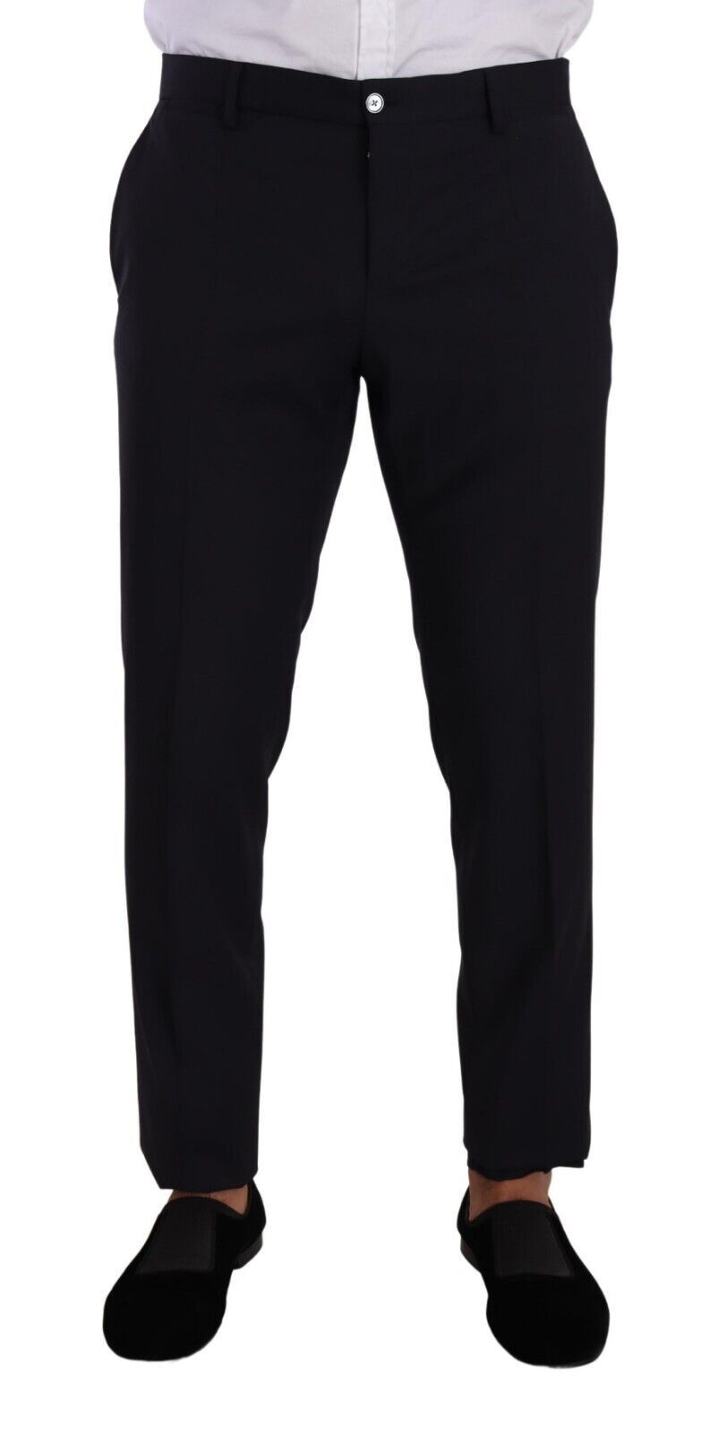 Immerse in the epitome of Italian elegance with this stunning Dolce & Gabbana two-piece Martini suit. This suit ensures a sharp silhouette with its deconstructed blazer featuring peak lapels, complemented by a carefully tailored double-breasted front with a classic two-button closure. The trousers resonate with the suit’s refined aesthetics, offering a concealed zip and button closure, alongside front slanted pockets, a watch pocket, and two back welt pockets with button details. The design is perfected with pressed pleats and unfinished hems for a custom fit.