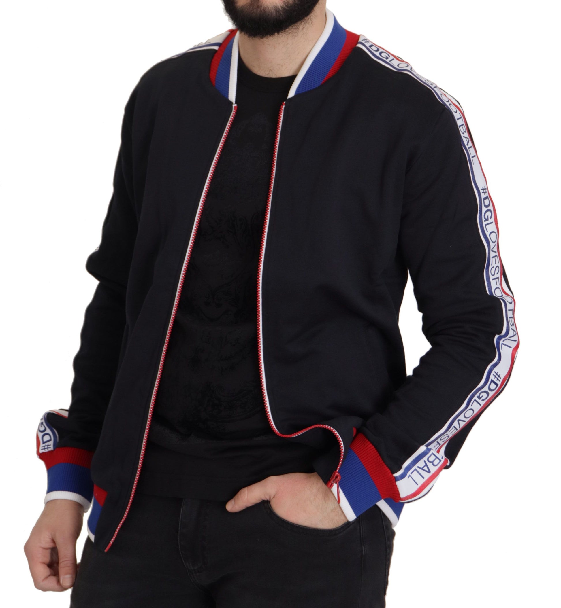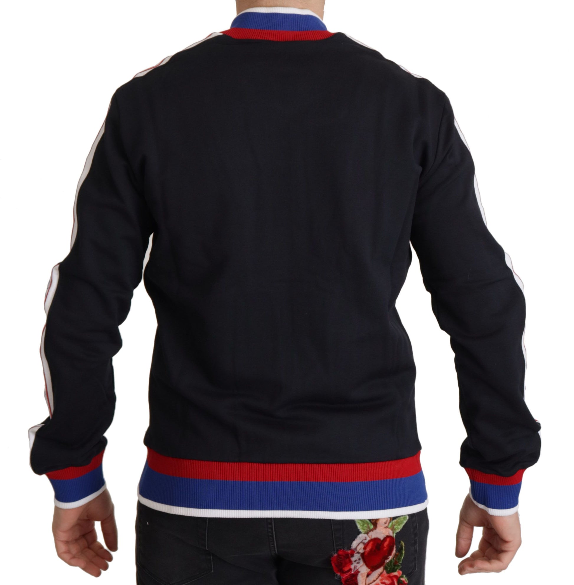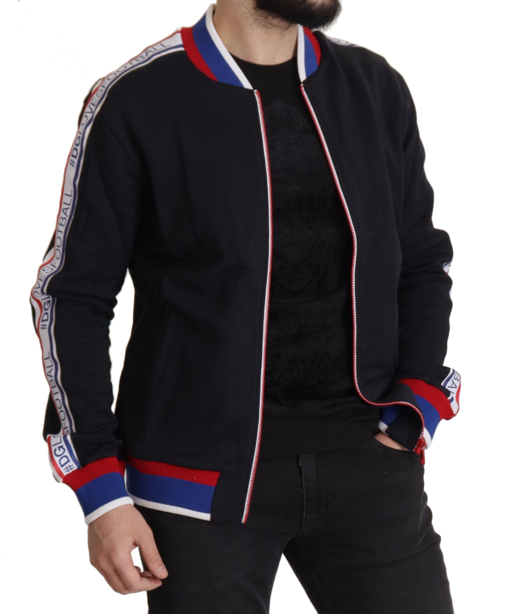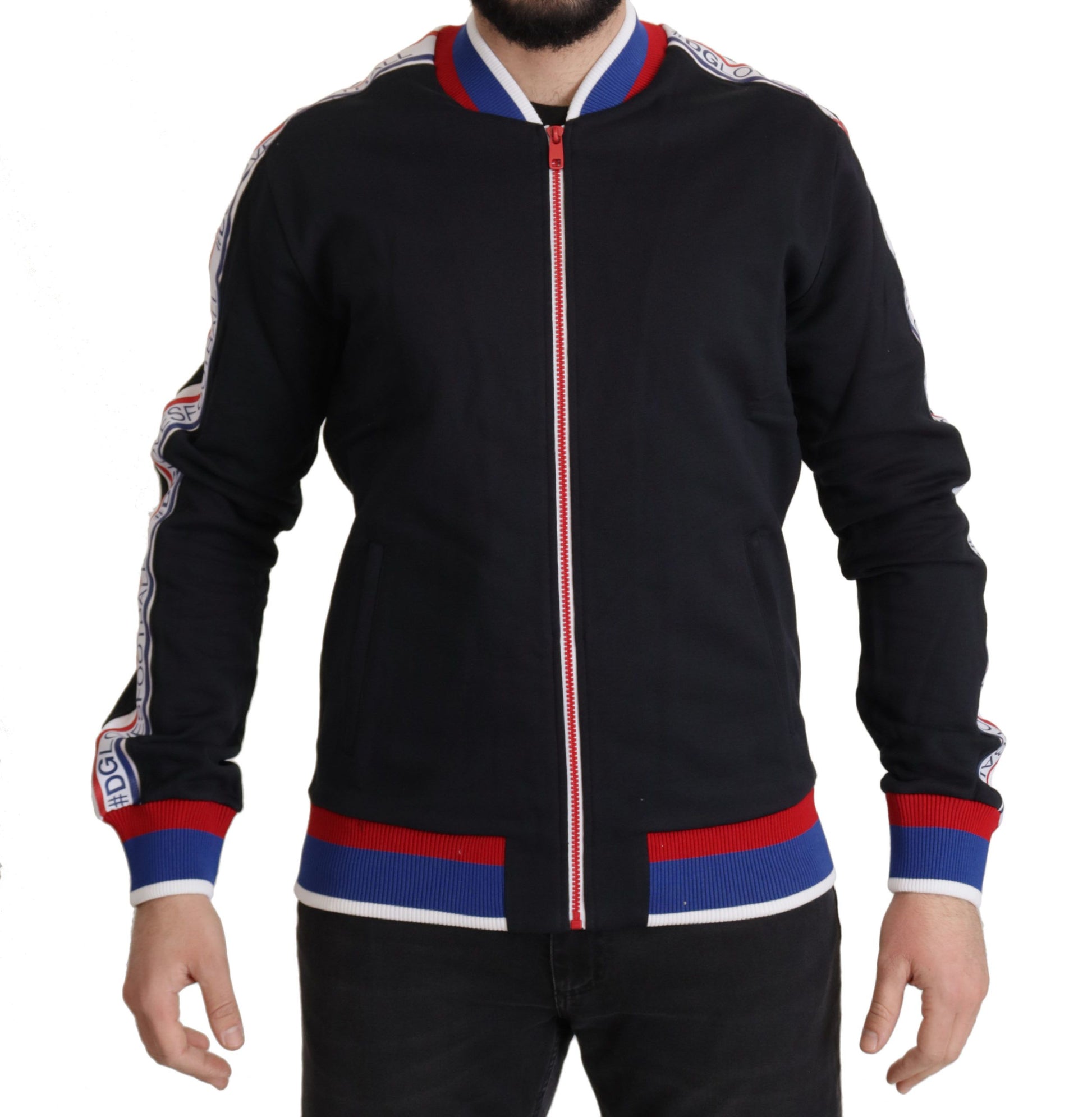 Introduce a splash of sophistication to your wardrobe with this exquisite sweater from Dolce & Gabbana. Crafted in Italy, this 100% authentic, brand new piece is more than just a layer; it embodies style with its luxurious cotton texture and vibrant blue hue, adorned with Moscow flag stripes. Perfect for those chilly days, it features a practical full zipper closure and two convenient front pockets, all while proudly displaying the iconic logo details that mark the essence of luxury.