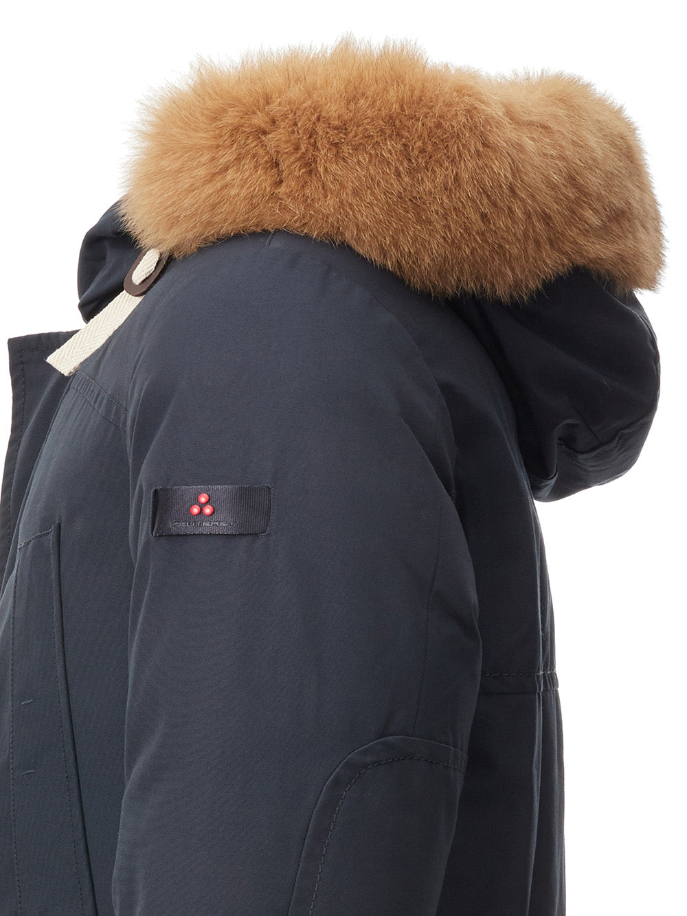 Indulge in the perfect harmony of luxury and warmth with our stunning new arrival. This elegant navy blue quilted parka by Peuterey is designed to keep you stylish and cozy from a cool +10°C to a chilly -15°C. With its sophisticated front zip and automatic button closure, plus a multitude of pockets, it’s the epitome of functionality meets sophistication. The adjustable hood with strap offers versatility while the removable fur collar adds a touch of opulence. Keep your silhouette sleek with internal waist adjustability and enjoy the convenience of spacious inner net pockets. Enhance any look with this jacket’s subtle logo detail, assuring its designer quality.