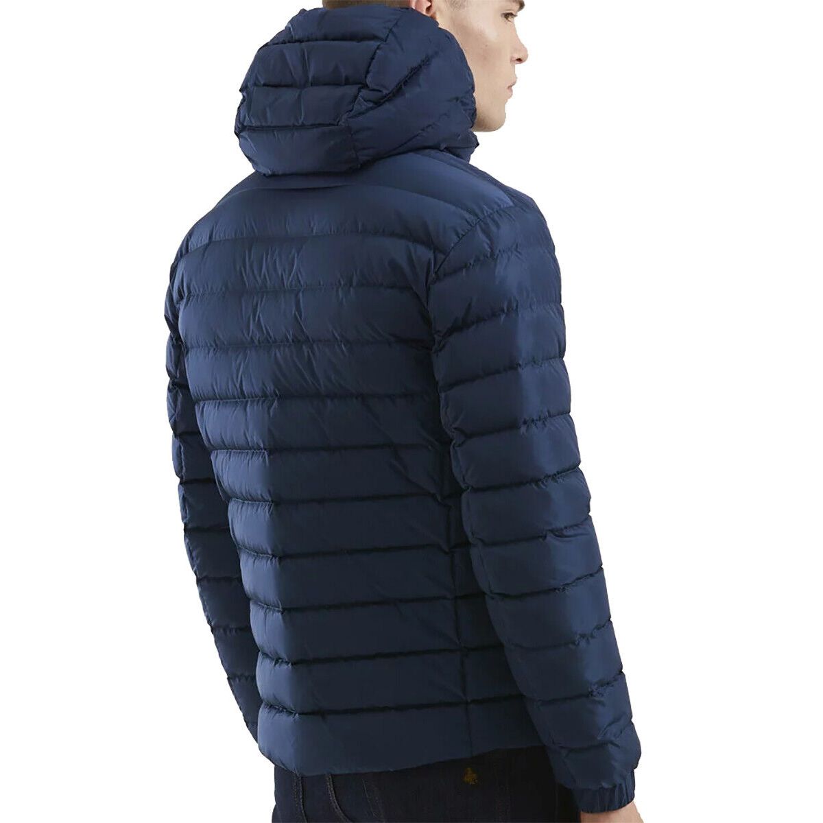 Elevate your cold-weather style with this sleek blue down jacket, perfect for braving the chilly seasons. Designed with functionality in mind, it features a snug hood, secure side pockets for your essentials, and a convenient zip closure. The additional chest pocket with button closure adds a touch of elegance and practicality, making it a standout addition to your wardrobe.