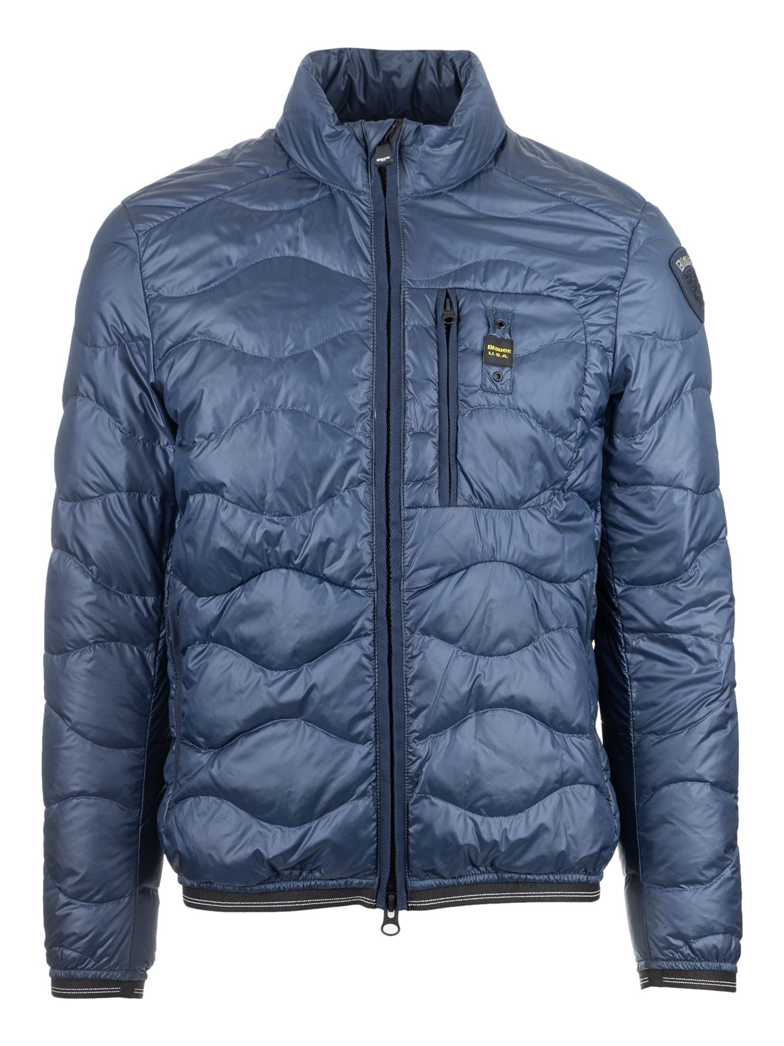 Classic Blue Nylon Jacket with Logo Accents