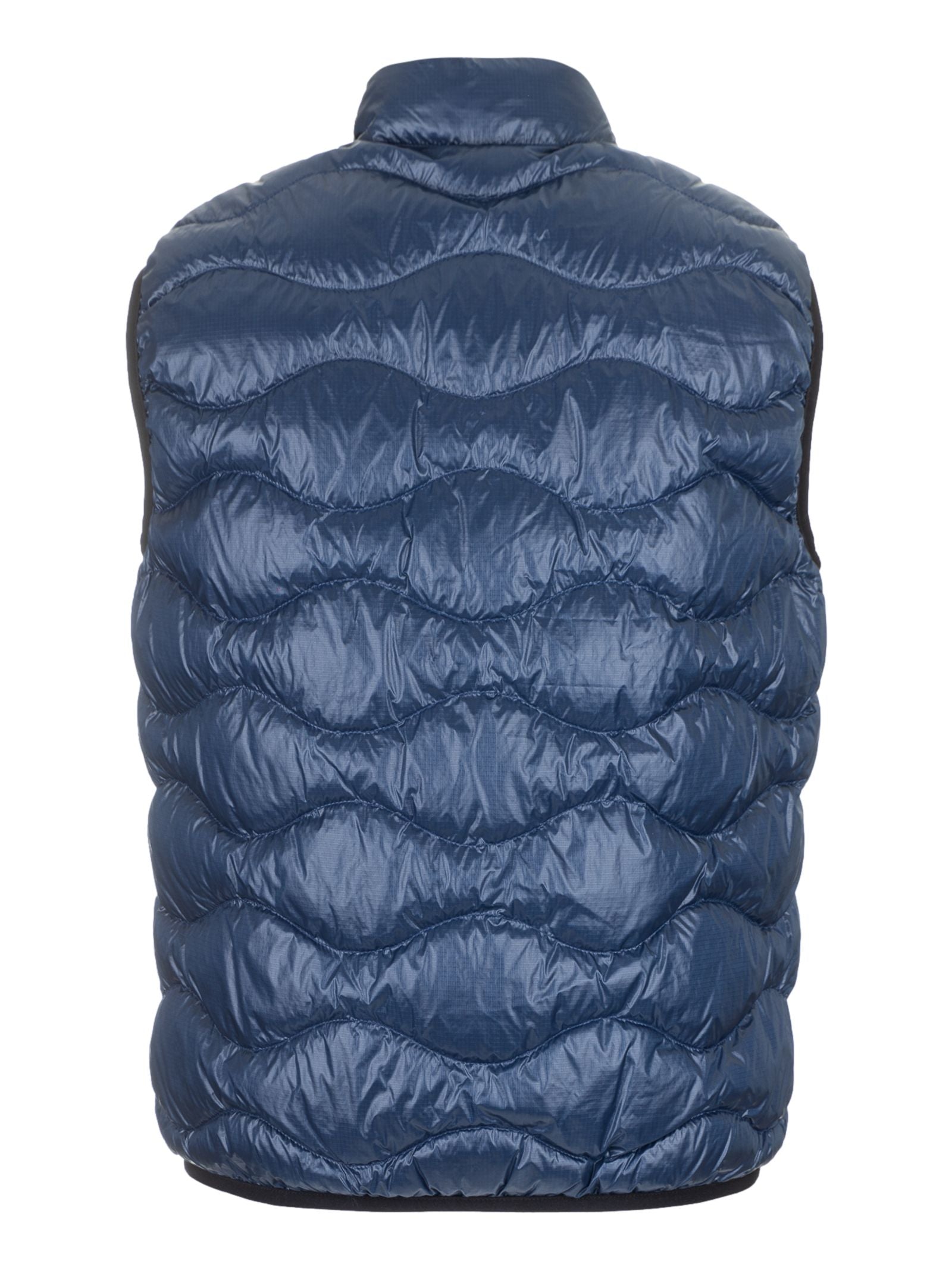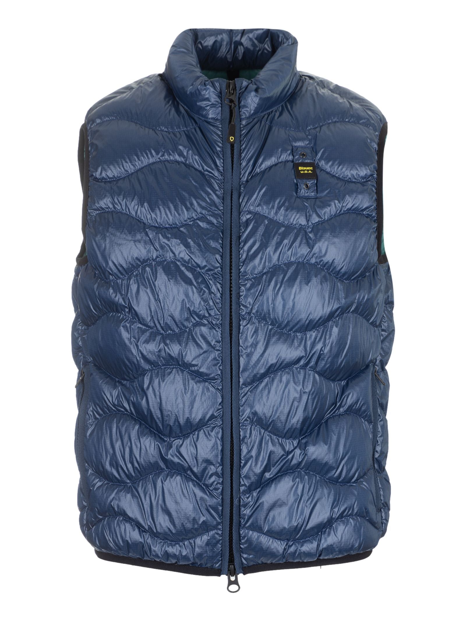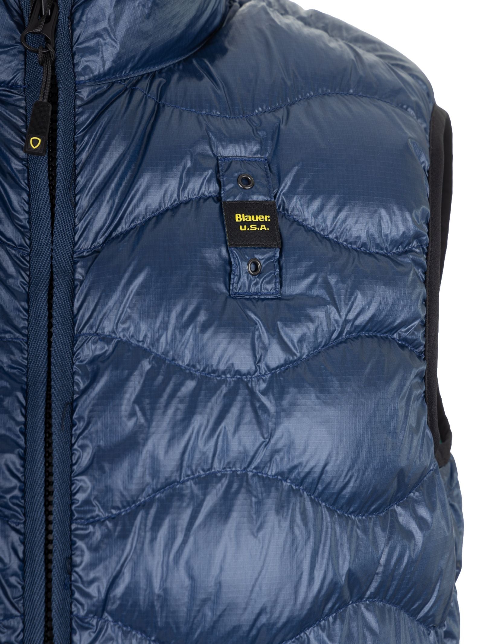 Enhance your wardrobe with this sleek blue vest, an embodiment of style and practicality. Equipped with a polished front zip closure and a refined brand logo on the chest, this vest not only promises to keep you cozy but also adds a touch of elegance to your outfit. The dual-pocket design ensures functionality, keeping your essentials within reach.