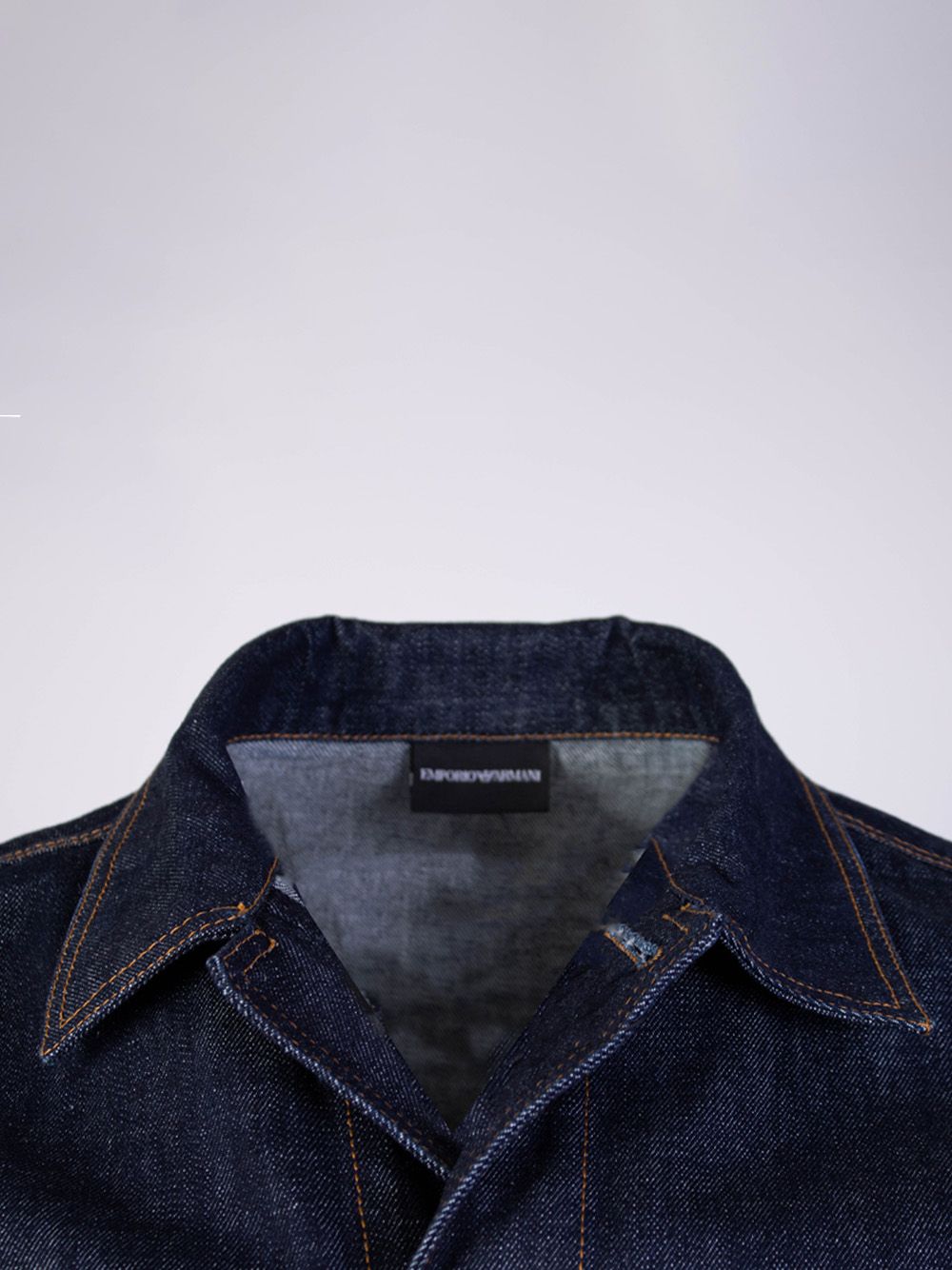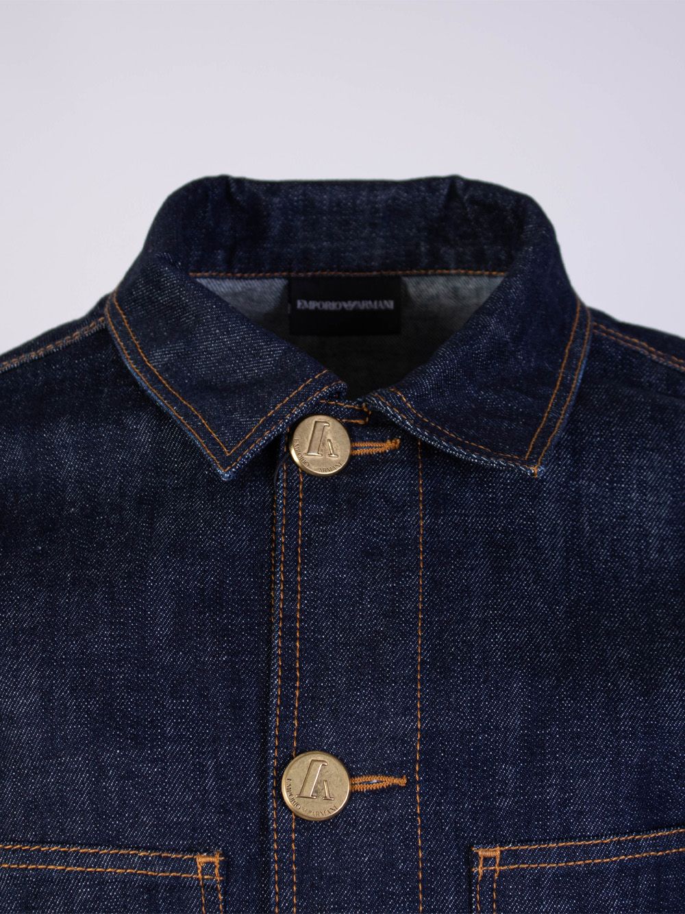 Exude effortless style with this authentic, new-with-tags Emporio Armani Denim Overshirt. Designed to elevate your wardrobe, this shirt features a front closure adorned with chic gold buttons, two prominent front maxi pockets with eye-catching contrasting seams, and a distinct logo detail on the back. A relaxed fit ensures comfort without sacrificing sophistication.
