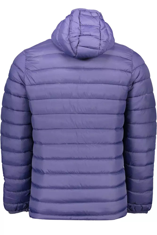 Chic Hooded Blue Jacket with Sleek Logo Detail
