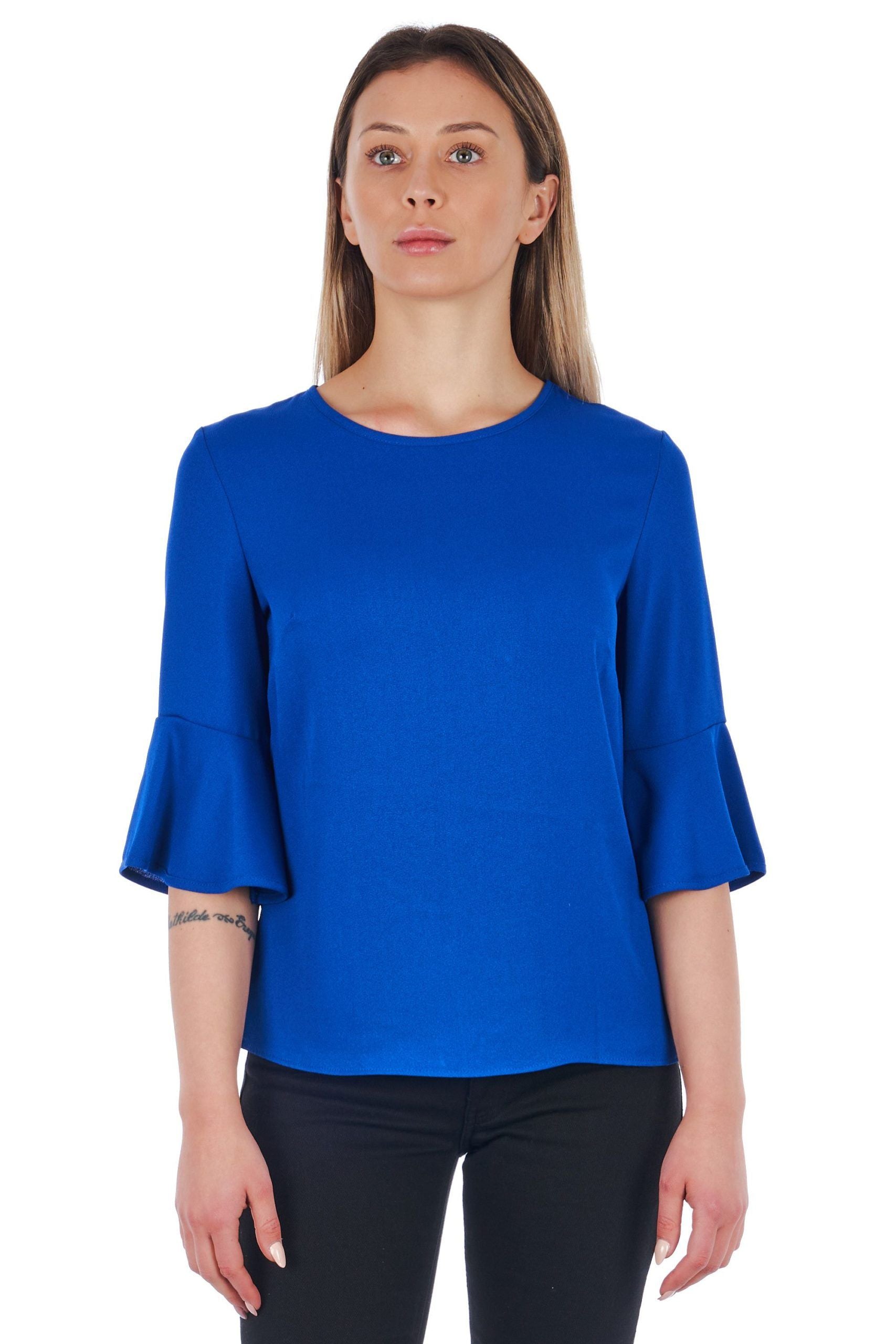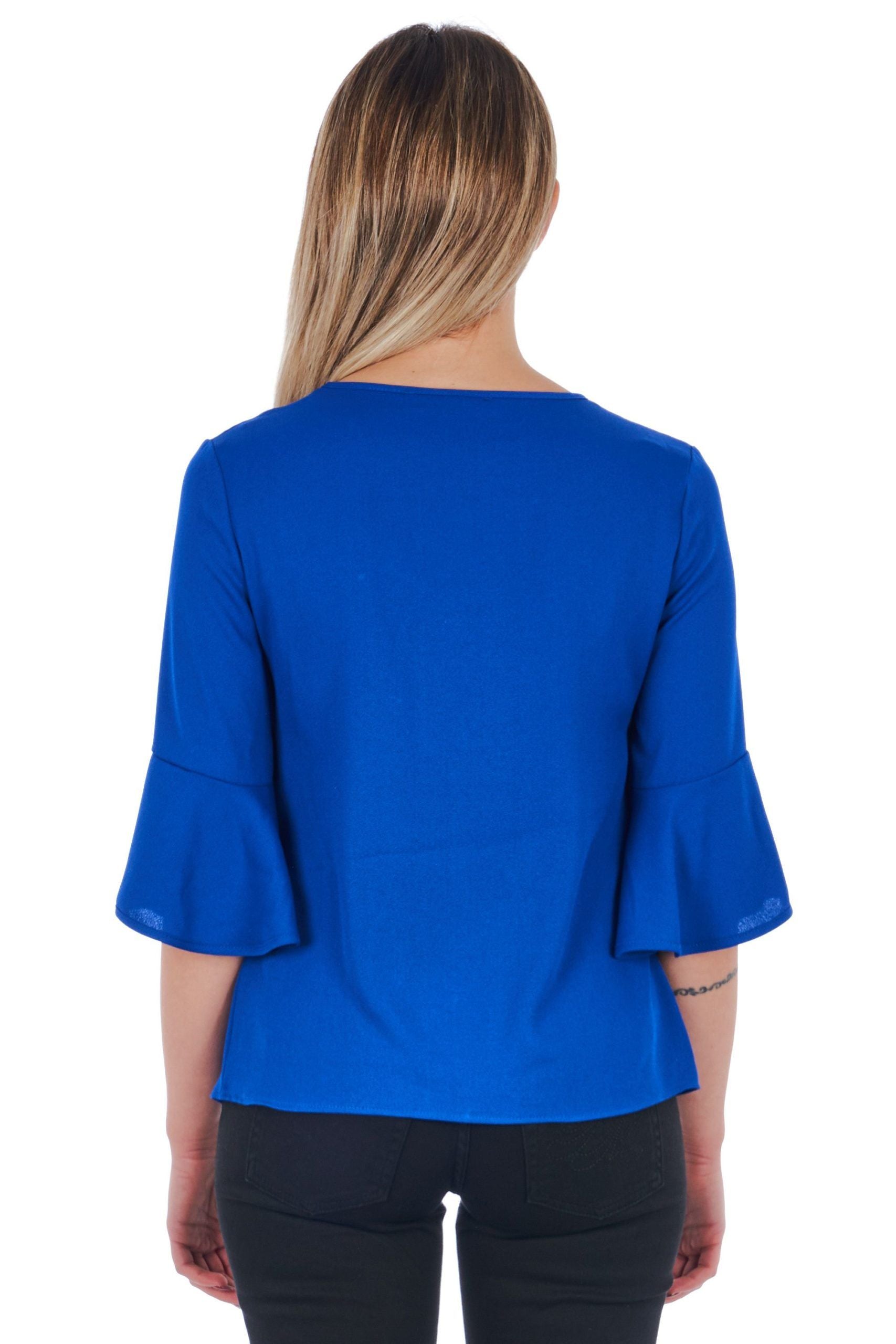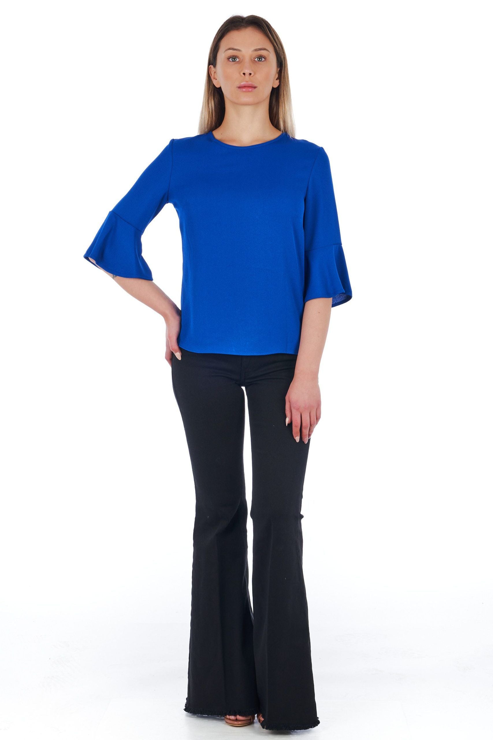 Discover the essence of sophistication with our Frankie Morello round neck blouse, featuring chic 3/4 flared sleeves that add a touch of elegance and flair to your wardrobe. Perfect for transitioning from a day at the office to an evening out, this blouse is a versatile addition to any fashion-forward collection.
