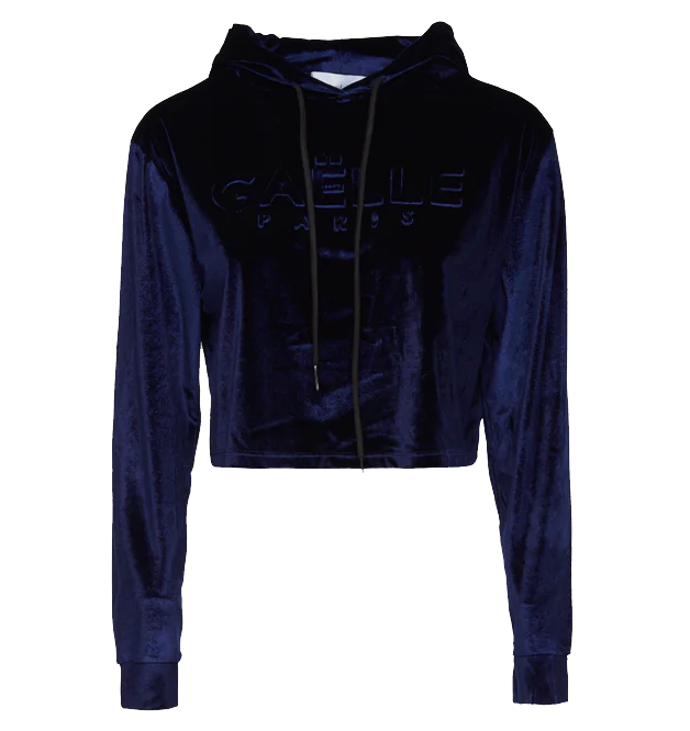 Indulge in the epitome of casual luxury with this sumptuous blue velvet hooded sweatshirt. With its embossed front logo, this piece effortlessly fuses comfort with sophistication. Crafted in Italy from a plush polyester and elastane blend, it offers the perfect stretch for a flattering fit.