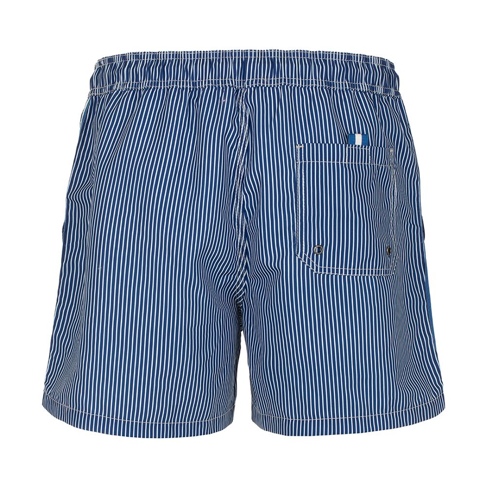 Blue Striped Swimsuit with Embroidered Logo