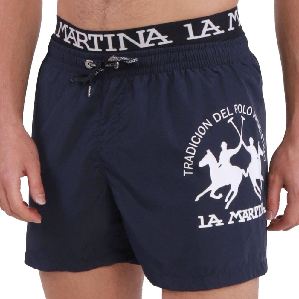 Dive into summer with La Martina’s men’s boxer swim shorts, tailored for those who embody a luxe, sporty lifestyle. These shorts feature a comfortable drawstring waist and a convenient back pocket, while the front boasts a sharp logo print for a distinct touch of class.
