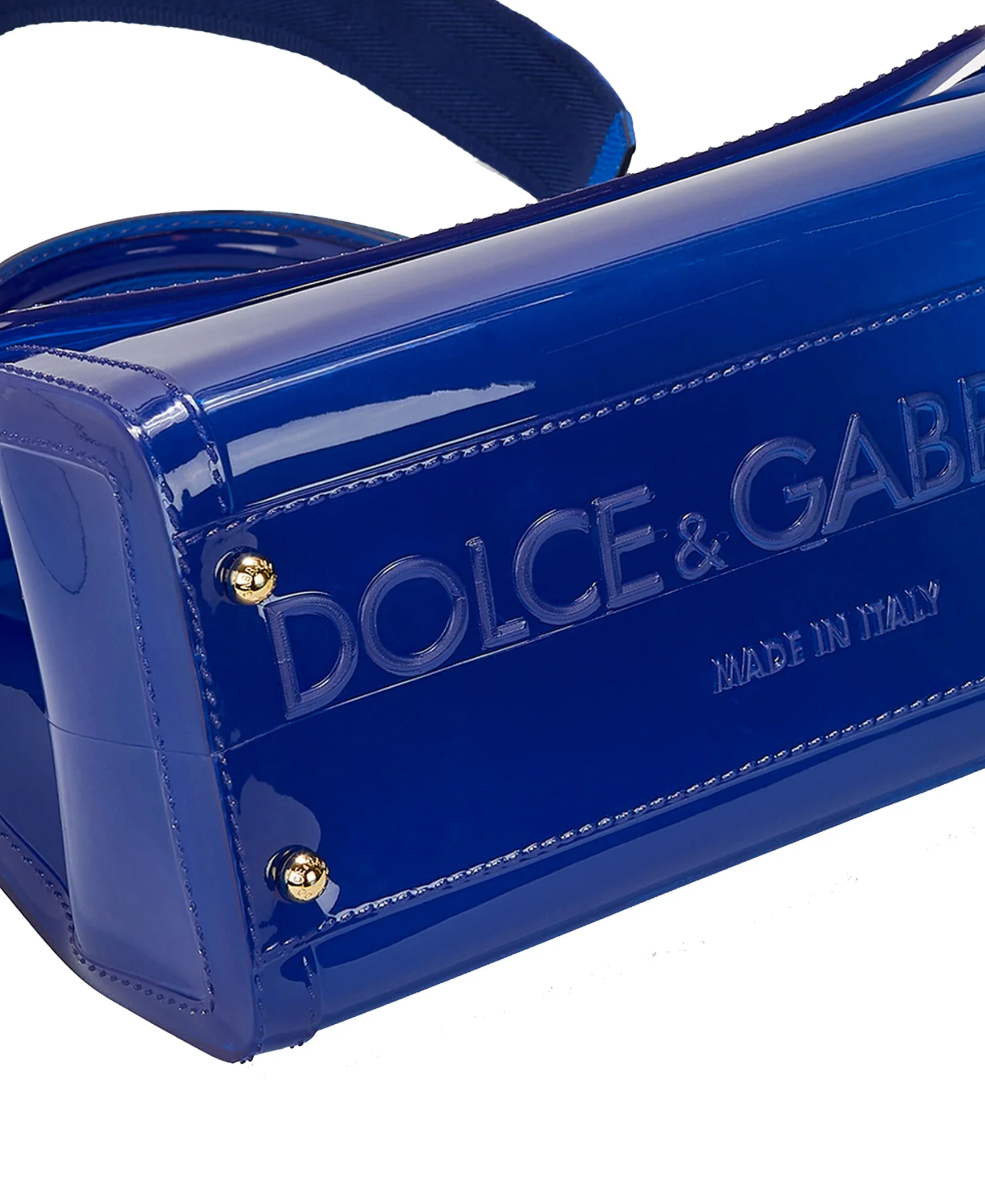Indulge in Italian luxury with this exquisite Dolce & Gabbana Sicily bag, a perfect blend of elegance and practicality. Sporting a striking blue hue, this bag is adorned with a metal brand logo on the front and gleaming gold-tone hardware. It boasts a versatile removable cotton shoulder strap with sumptuous calfskin and lambskin inserts, while the embossed logo on the bottom adds an extra touch of sophistication. A statement piece with sizeable dimensions of 28x23x13 cm, this bag is an embodiment of high fashion craftsmanship made in Italy.
