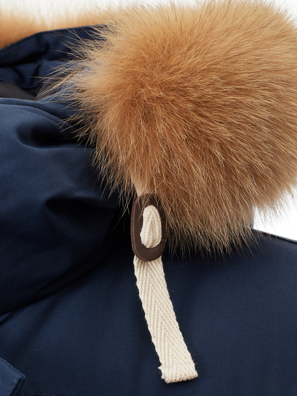 Elegant Blue Quilted Winter Parka with Fox Fur Collar