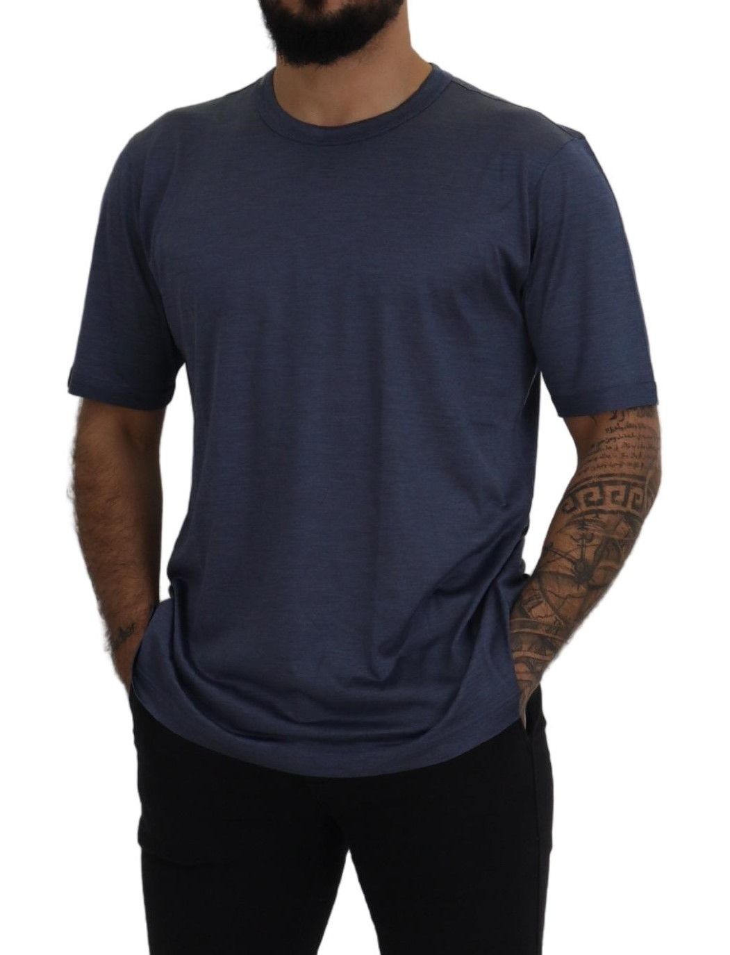 Experience luxury and sophistication with our 100% Authentic Dolce & Gabbana T-shirt. Crafted from the finest 100% silk, this blue, regular-fit T-shirt is not only a testament to timeless style but also a piece that brings Italian elegance to your wardrobe. The short sleeve crewneck design is complemented by subtle logo details, making it a perfect blend of comfort and high fashion. Made in Italy, this piece ensures you stand out with its exquisite craftsmanship and premium quality.