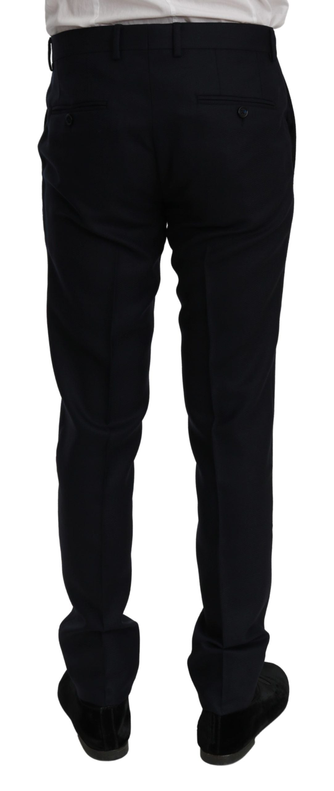 Step into the world of high fashion with this impeccable Dolce & Gabbana Martini Suit. Perfect for those seeking elegance and style, this slim fit, single-breasted 2 piece suit features a sophisticated blazer and sleek trousers. Tailored to perfection, the suit comes in a stunning blue, detailed with a two-button closure, three inside pockets, and a modest back vent, ensuring a sharp silhouette. Italian craftsmanship shines through with luxurious fabric composition and exquisite lining for comfort and durability.