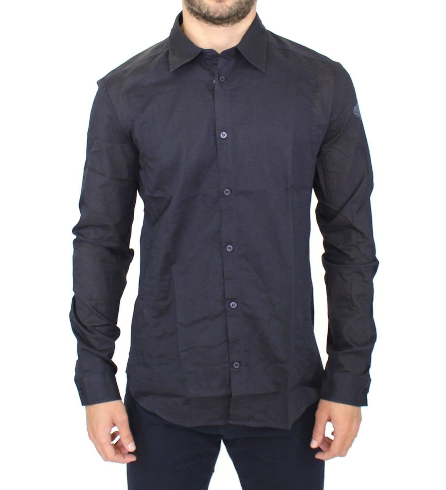 Discover the epitome of sophistication with our charming blue slim fit casual shirt. Crafted from premium 100% cotton, this shirt is the pinnacle of comfort and elegance, perfect for a refined casual look. Featuring meticulous logo detailing and a classic button-front style, it is an authentic Ermanno Scervino creation designed for the fashion-conscious individual.