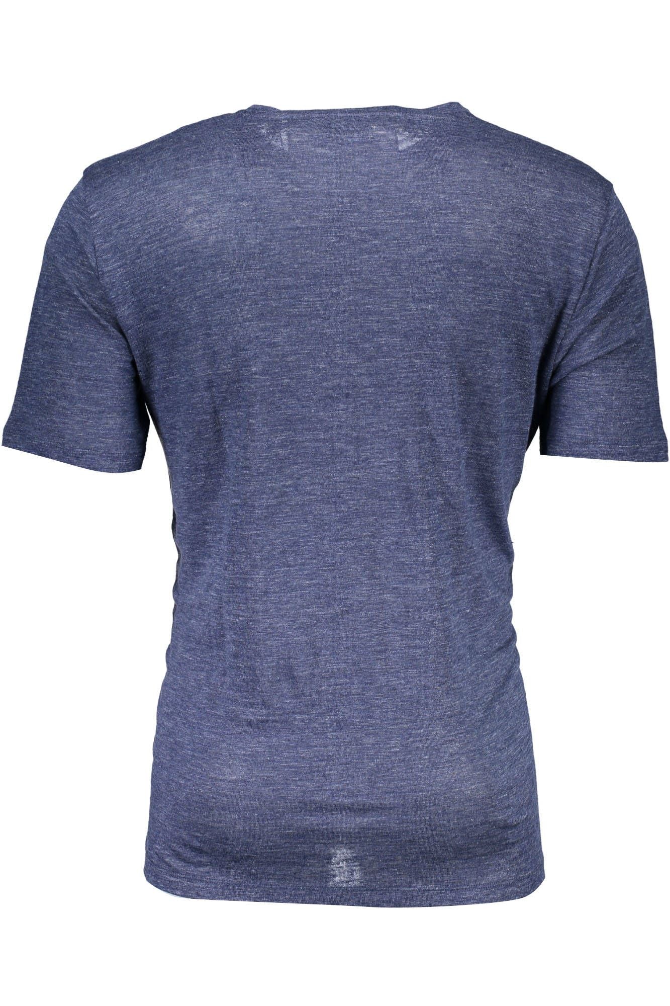 Chic Blue Linen Round Neck Tee with Logo Detail