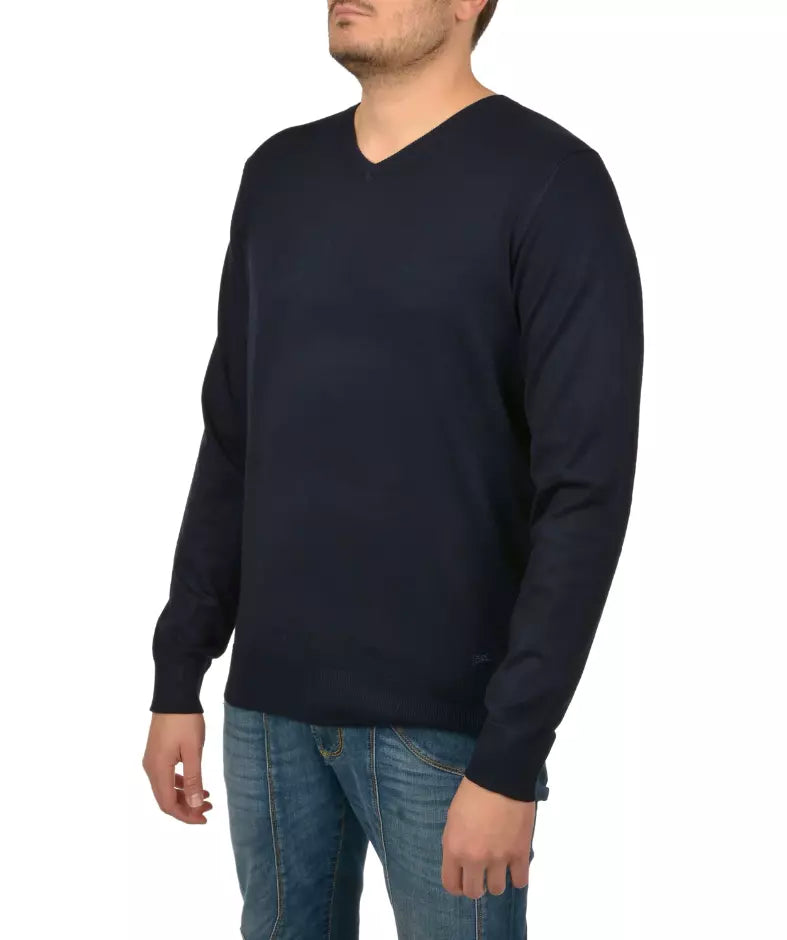 Navy Blue Viscose V-Neck Sweater – Timeless Elegance