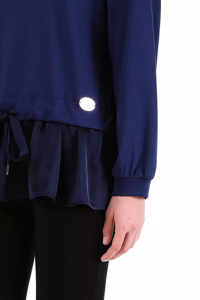 Discover the epitome of casual elegance with our viscose blend sweatshirt, adorned with sophisticated tone-on-tone satin inserts for a luxurious touch. The stunning shawl collar and satin flounce at the hem add a chic flair, perfectly complemented by the delicately placed logo plaque embellished with sparkling rhinestones. Experience the perfect marriage of comfort and style.