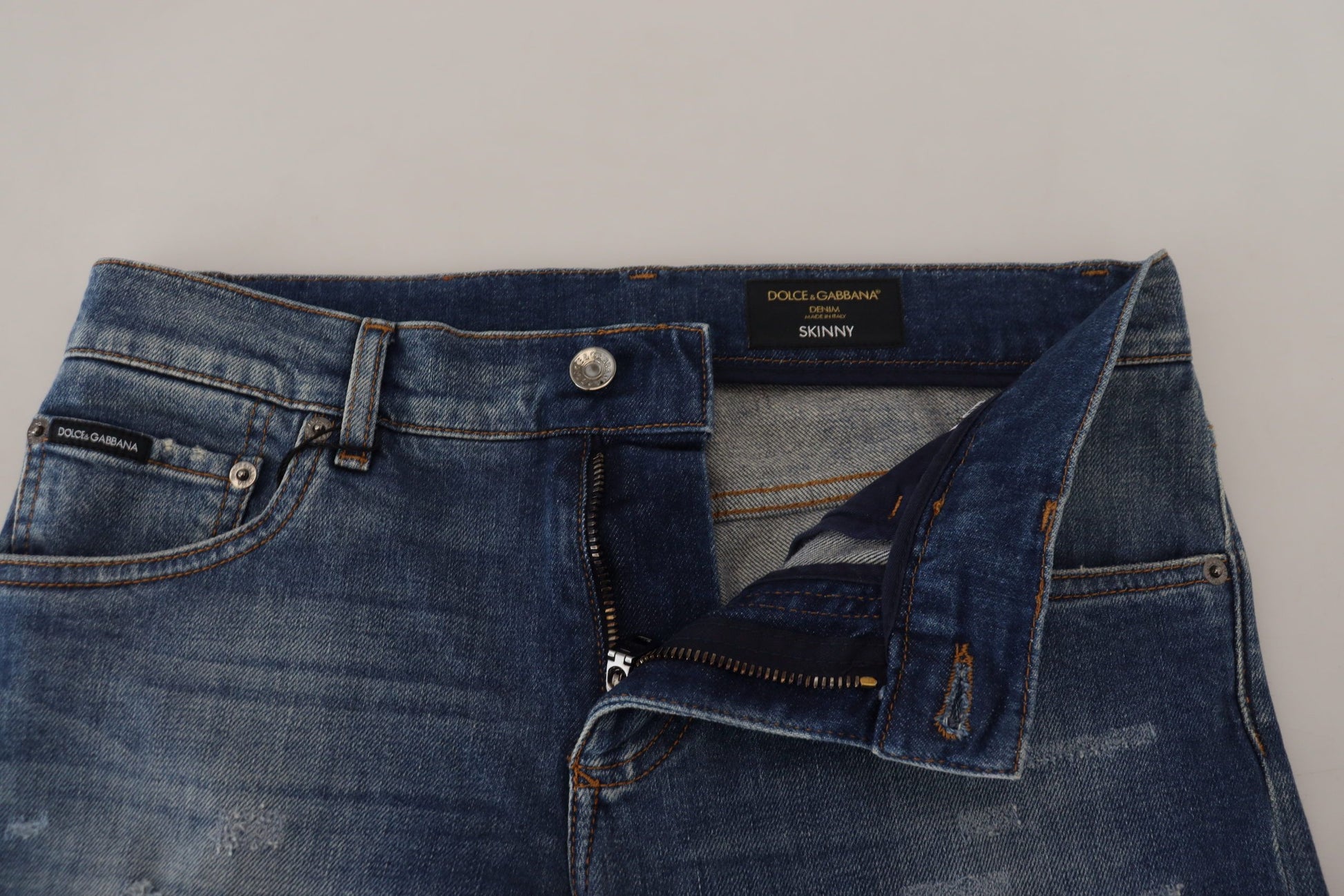 Dive into the essence of Italian luxury with these exquisite Dolce & Gabbana skinny fit jeans. Perfect for those who appreciate the finer things in life, these jeans are designed to offer a flattering slim silhouette while ensuring comfort with a hint of elastane. The blue wash color adds versatility to your wardrobe, making them ideal for a range of occasions, from casual outings to more polished ensembles. Crafted with the care and quality synonymous with Made in Italy, these jeans are more than a statement piece—they’re an investment in enduring style.