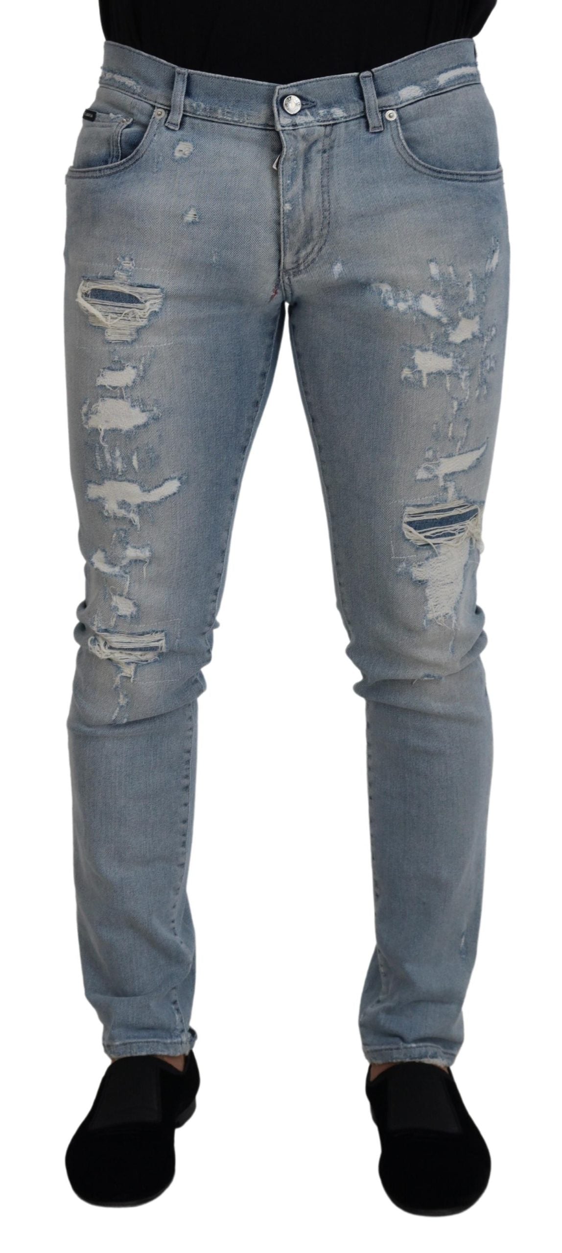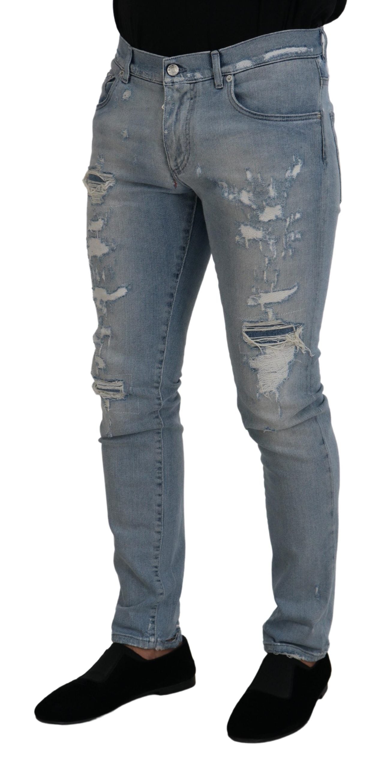 Explore the epitome of Italian craftsmanship with these stylish and comfortable Dolce & Gabbana Denim Pants. The luxurious blend of materials ensures a perfect fit while keeping you in vogue with their classic blue washed hue. Flaunting the iconic logo details, these jeans provide a chic zipper closure, embodying the elegance and sophistication inherent in the brand. Perfect for an upscale casual look, they offer versatility and high-fashion appeal.
