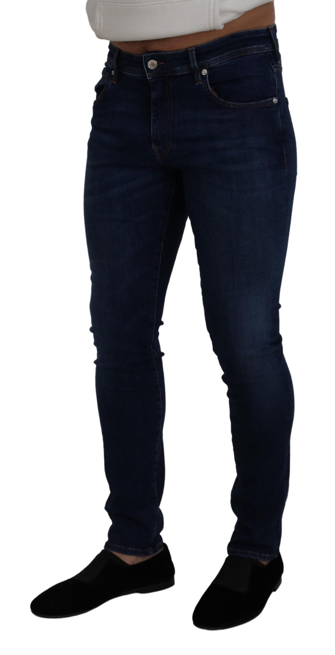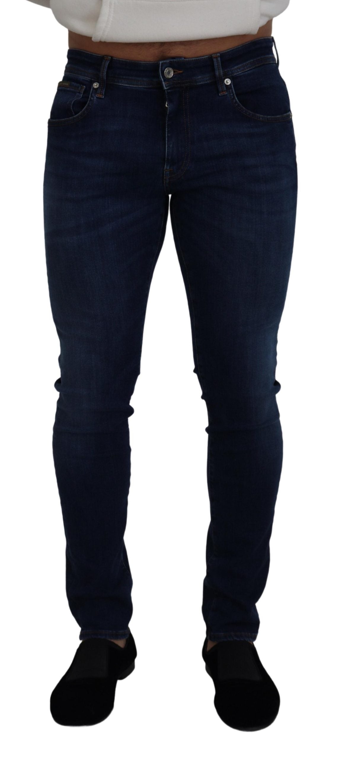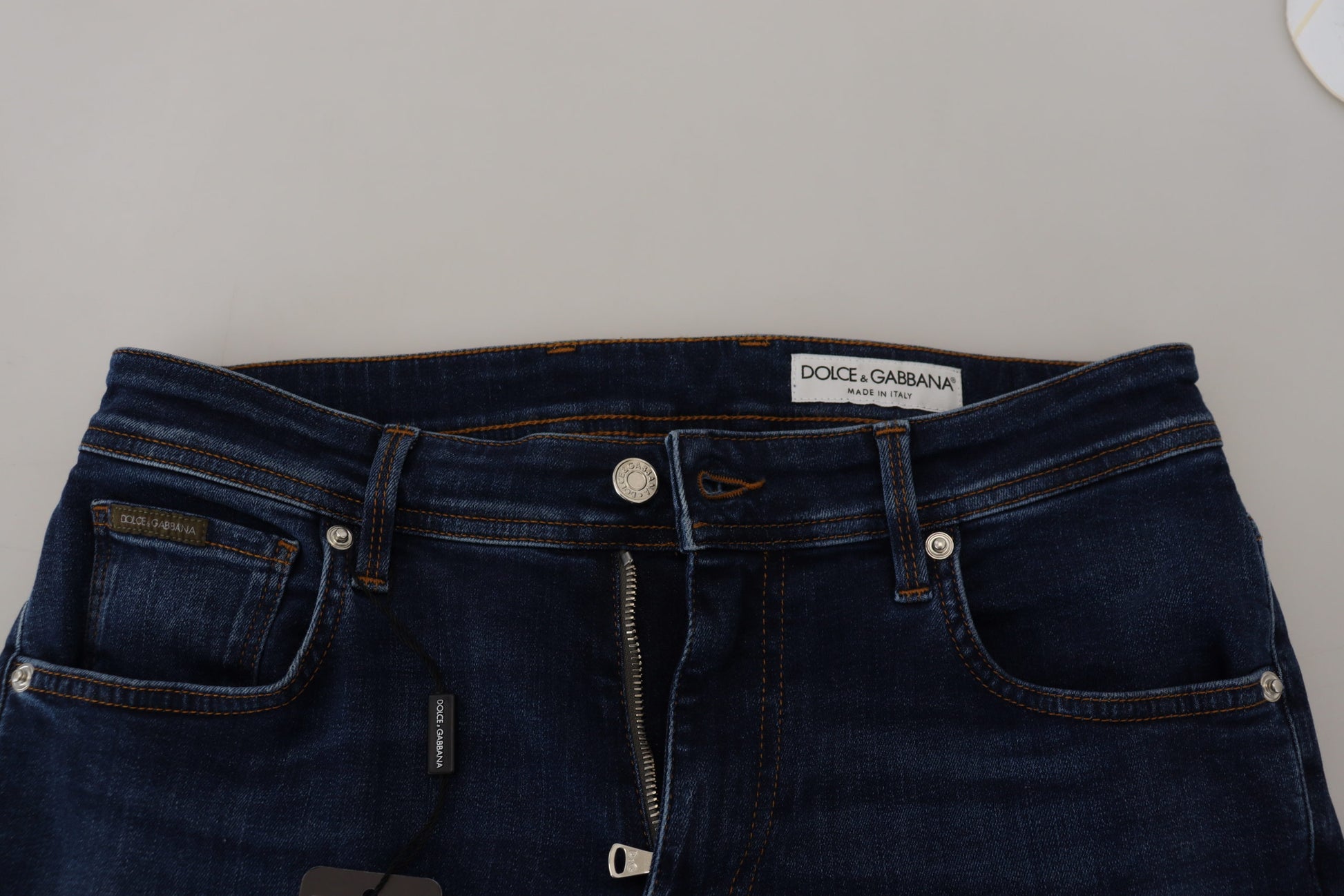 Discover the epitome of Italian craftsmanship with these elegant denim pants from Dolce & Gabbana. Designed to offer both style and comfort, these jeans are perfect for any fashion-savvy individual looking to make a statement. Featuring a contemporary blue washed color, zipper closure, and subtle logo details, these pants are a must-have addition to your wardrobe. Crafted with a blend of high-quality cotton and a touch of elastane for that perfect fit, they’re made to turn heads.