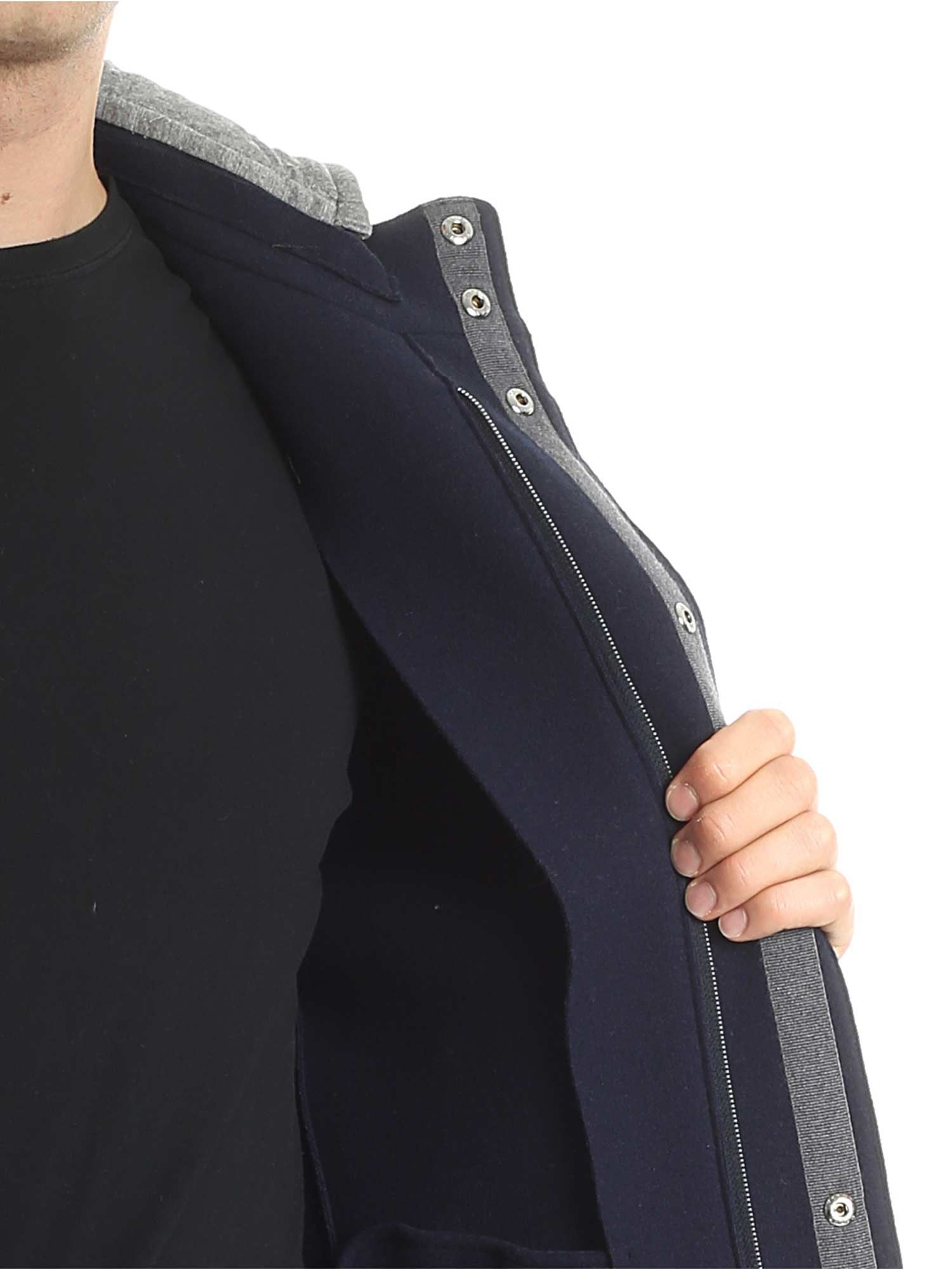 Experience the perfect blend of style and practicality with this elegant blue coat, crafted from the Resort collection. Designed for the discerning individual, it features side slit pockets for convenience and a removable padded hood for versatile styling. The front zip closure paired with press studs ensures a secure and comfortable fit. This luxurious coat is meticulously made in Italy, promising unparalleled craftsmanship.