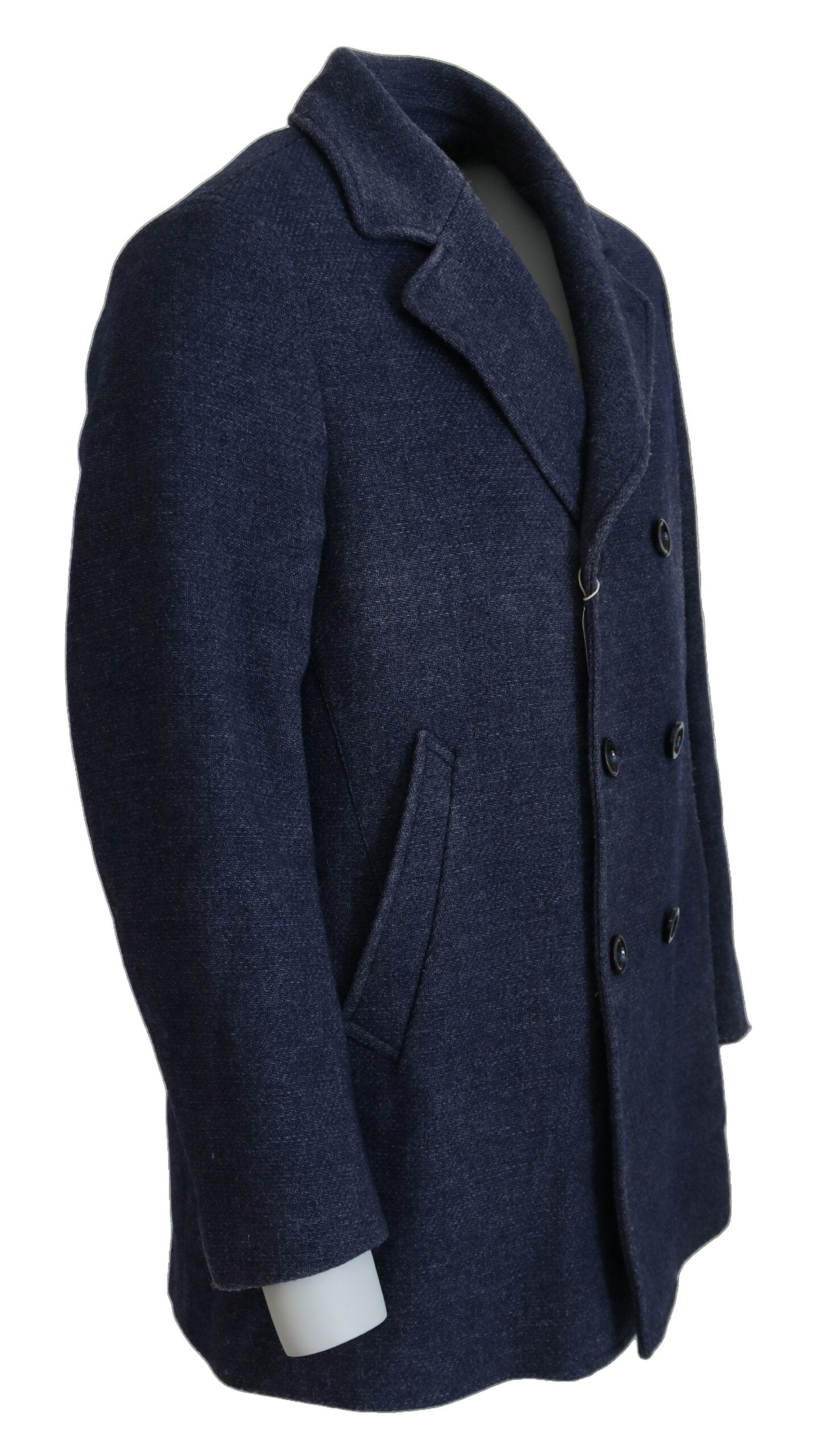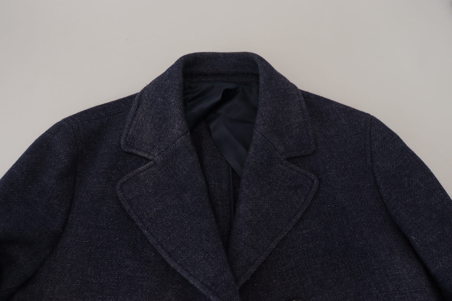 Upgrade your wardrobe with this exquisite piece by Domenico Tagliente. With its impeccable Italian craftsmanship, this double-breasted coat jacket is a luxurious addition to any fashion connoisseur’s collection. The jacket’s deep blue hue and stylish design make it perfect for both formal and casual outings. Featuring convenient front and inside pockets, along with a refined logo detail, it offers both functionality and elegance.