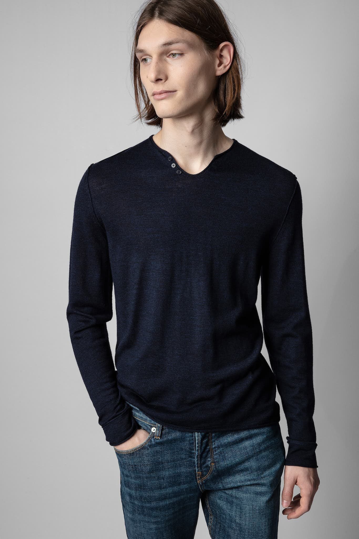 Elevate your style with the soft touch of our Seraph Collar Wool Sweater. Featuring a sophisticated Henley collar adorned with three buttons, this piece is perfect for a refined, yet casual look. Crafted from 100% pure wool, it promises warmth and a luxurious feel for those chilly days.