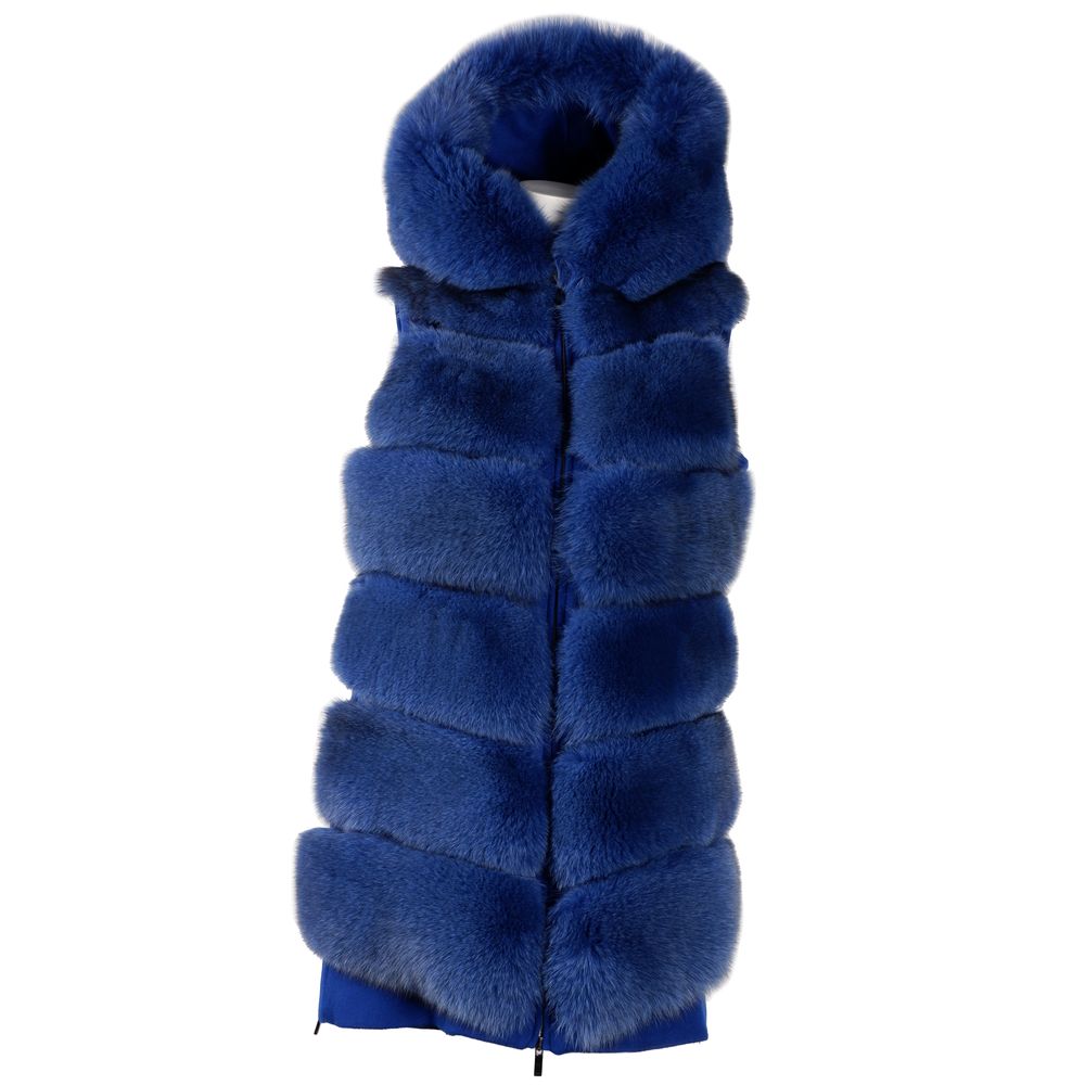 Elegant Sleeveless Wool Coat with Fox Fur Trim