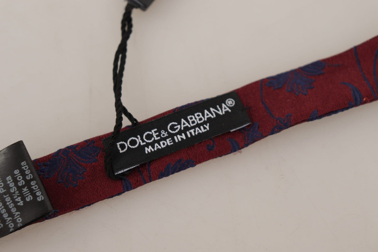 Indulge in the essence of sophistication with this stunning Maroon Bordeaux bow tie, featuring an exquisite Blue Flower pattern. Crafted from the finest 100% silk, this Dolce & Gabbana masterpiece is perfect for adding a touch of Italian elegance to your formal attire. This pre-tied bow tie comes with an adjustable neck strap, ensuring a seamless fit for any special occasion.