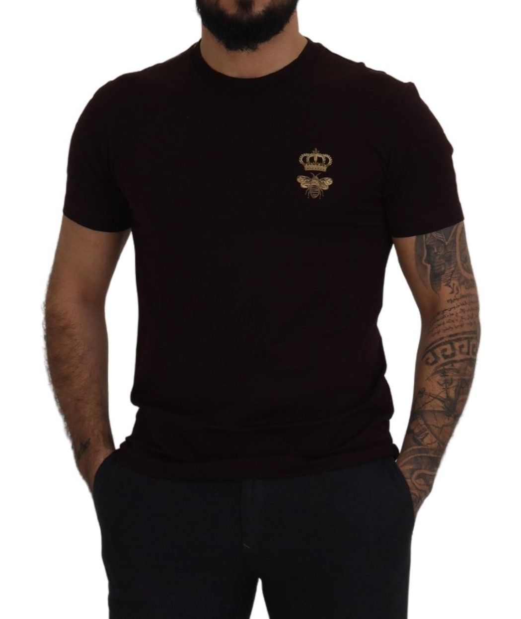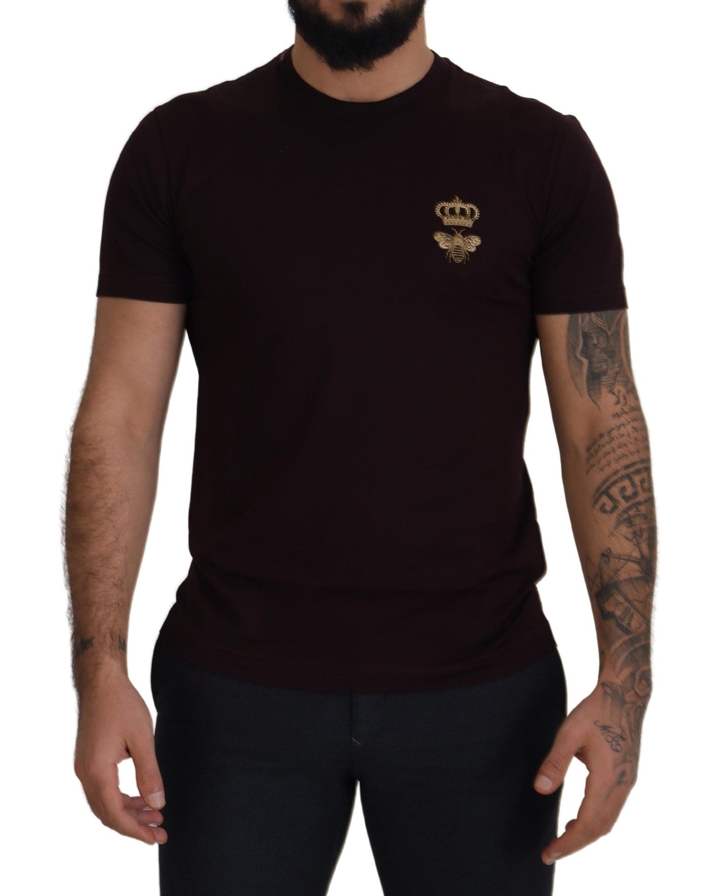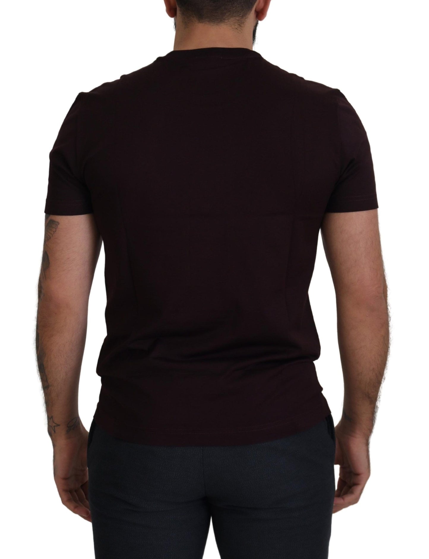Indulge in the epitome of Italian craftsmanship with this stunning Dolce & Gabbana crewneck T-shirt. This luxurious piece is brand new with tags, offering both style and comfort in a rich burgundy hue. The regular fit and pure cotton material ensure it is a timeless addition to your wardrobe, perfect for any sophisticated casual occasion.