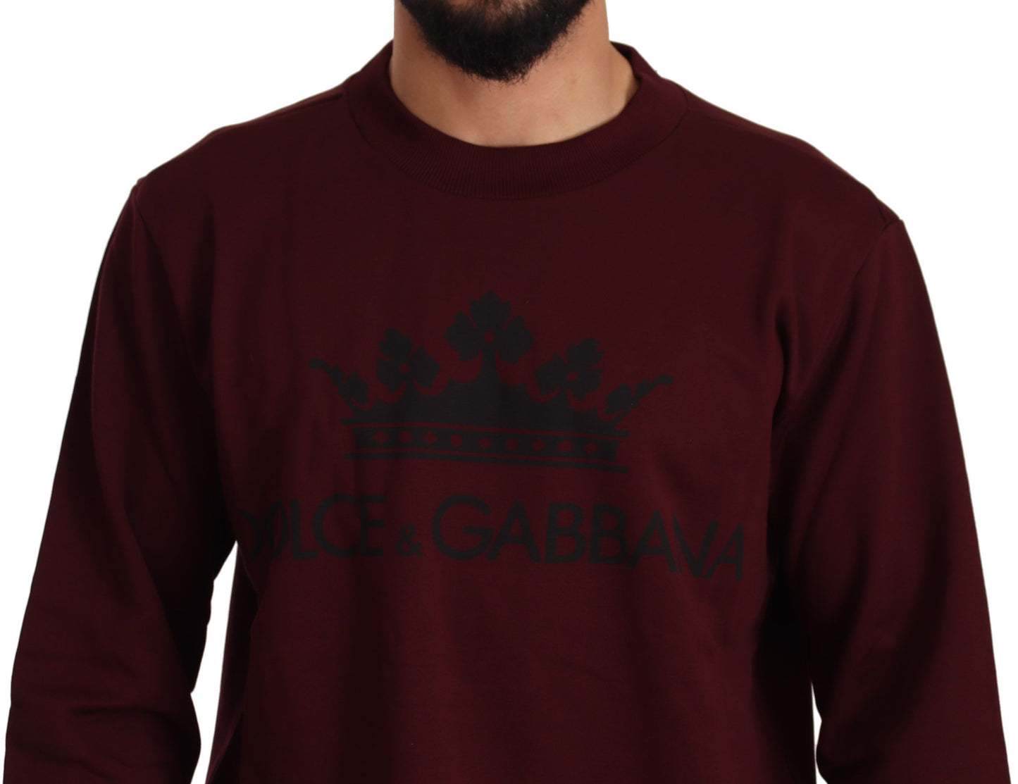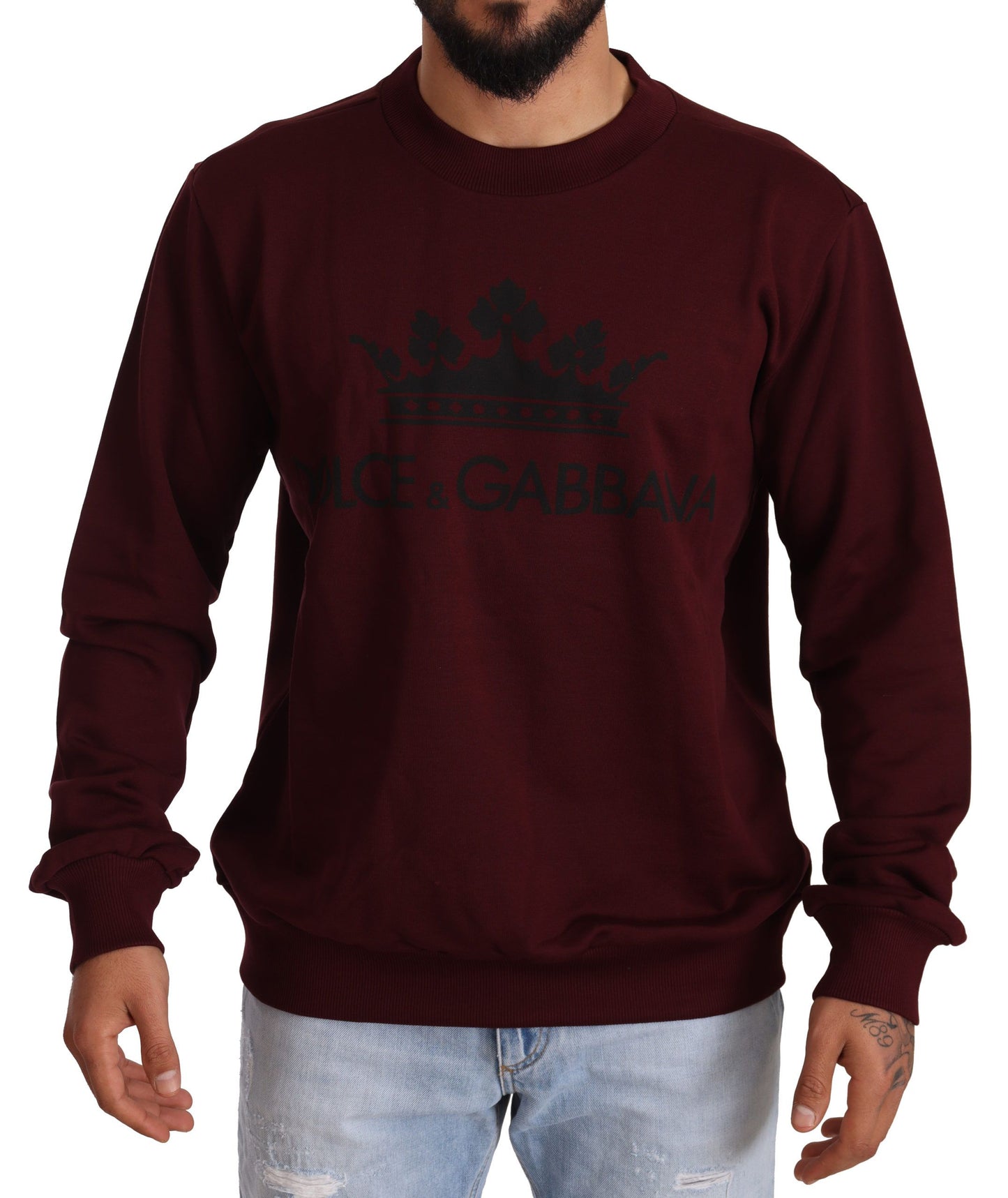 Step into the realm of high fashion with this absolutely stunning, 100% authentic Dolce & Gabbana pullover sweater. The bordeaux-hued piece is adorned with a royal crown print, perfectly balancing majesty with casual elegance. Made in Italy, this sweater is crafted from the finest 100% cotton, promising both comfort and superior style. The illustrious brand’s eye for detail is evident in the refined logo details that add an extra layer of luxury. Elevate your wardrobe with this statement-making garment.
