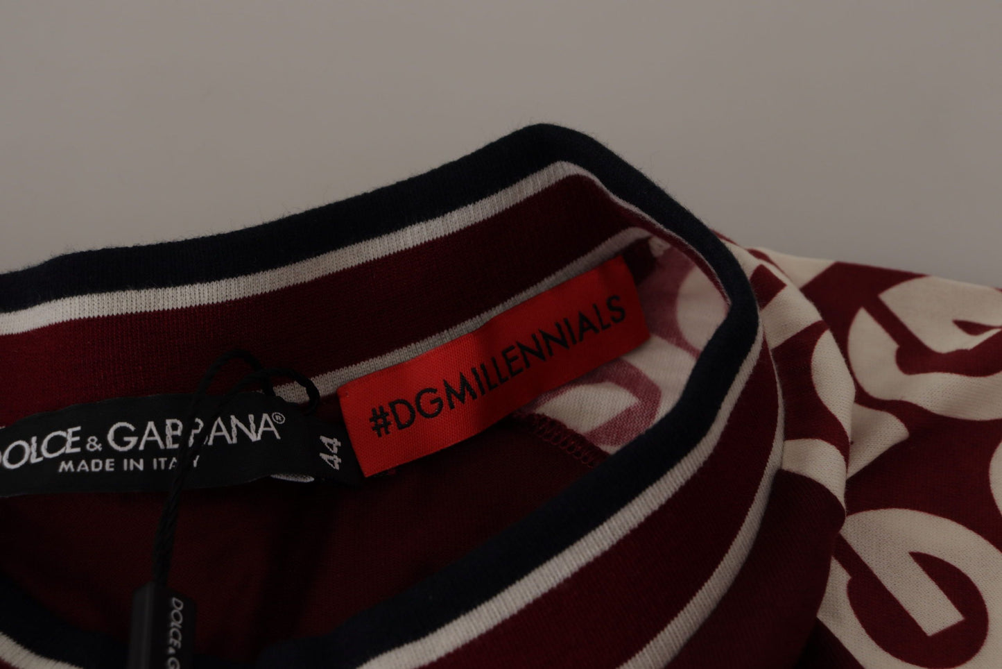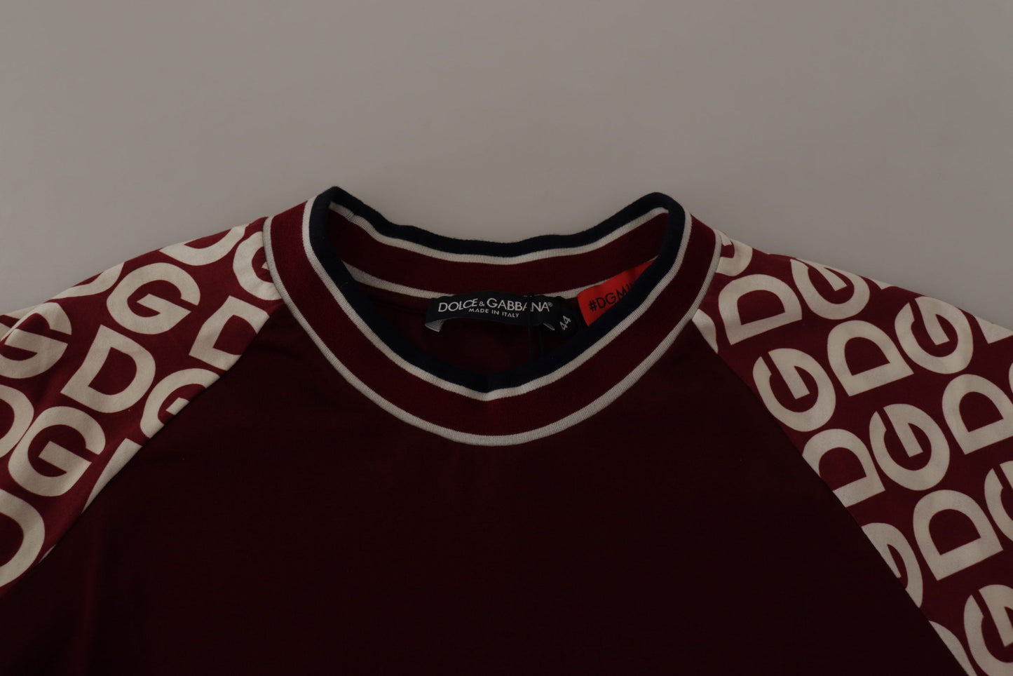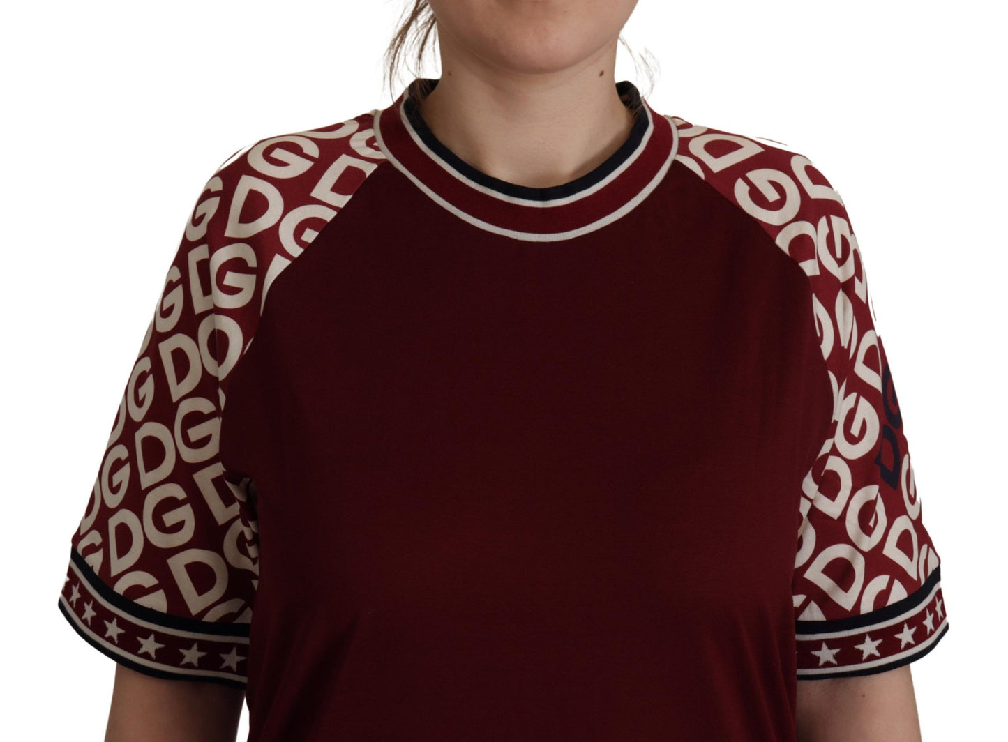 Embrace the epitome of luxury casual wear with this stunning Bordeaux-colored crew neck tee, embellished with the iconic DG mania print. This 100% cotton top is not just a statement piece, but a testament to the exceptional craftsmanship associated with the Dolce & Gabbana brand. Made in Italy, it’s perfect for those who appreciate the fusion of comfort and high fashion.