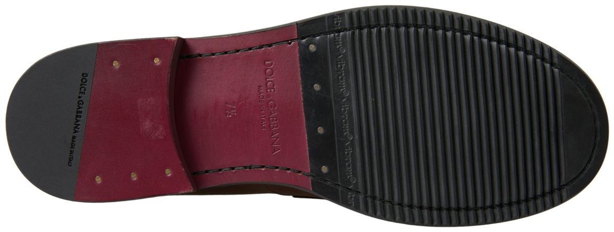 Step into style with these exquisite, new-with-tags Dolce & Gabbana men’s loafers. Perfect for formal events, these loafers are crafted from high-quality, 100% leather with a luxurious bordeaux hue that exudes sophistication. The sleek design is complemented by subtle logo details and a leather and rubber sole, ensuring both style and durability. Handcrafted in Italy, these loafers represent the pinnacle of high craftsmanship and exclusive fashion.