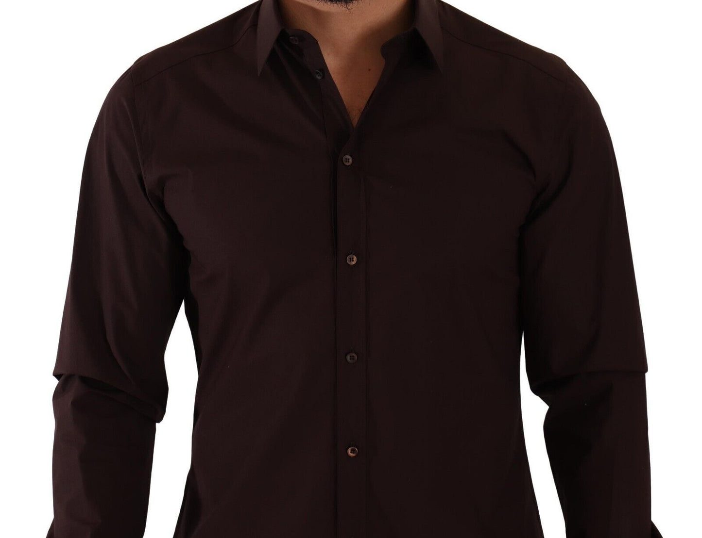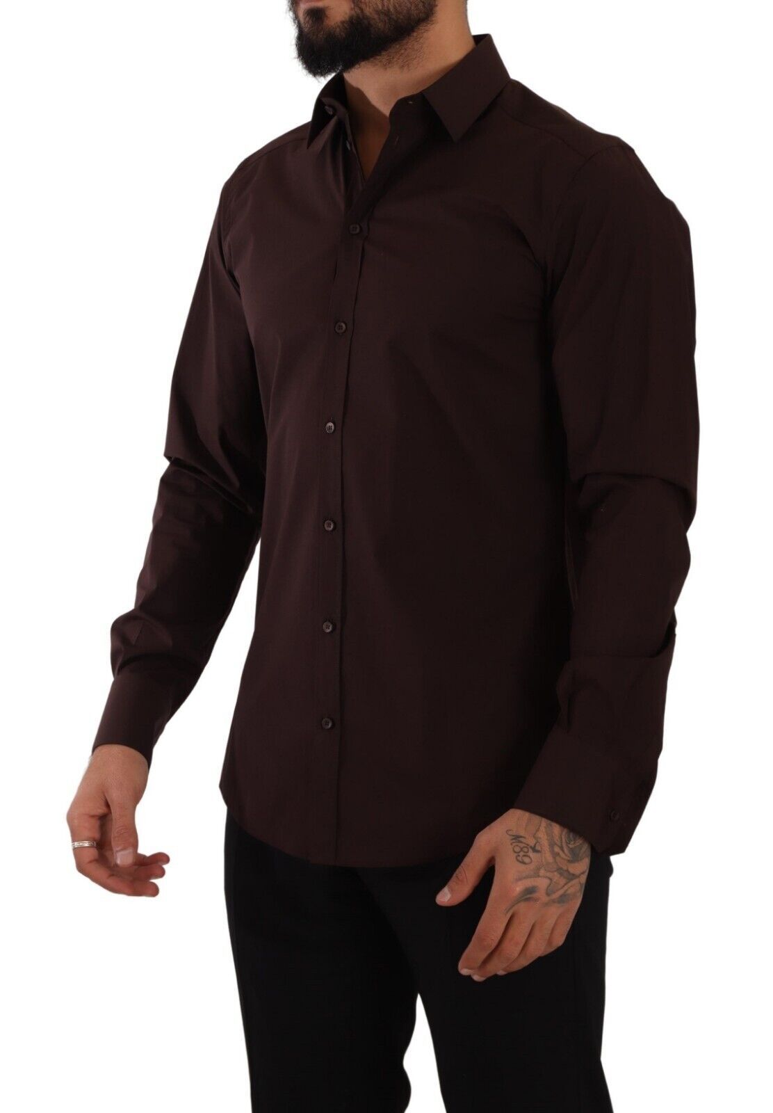 Step out in style with this exquisite Dolce & Gabbana MARTINI dress shirt, perfect for those who appreciate a fusion of modern elegance and classic sophistication. Crafted from a high-quality blend of cotton and elastane, this slim fit shirt ensures both comfort and a tailored silhouette. The deep burgundy color adds a touch of richness to any outfit, making it an ideal choice for formal events or the discerning professional’s wardrobe. Complete with a front button closure and subtle logo details, this shirt is a true representation of the luxurious craftsmanship associated with Made in Italy apparel.